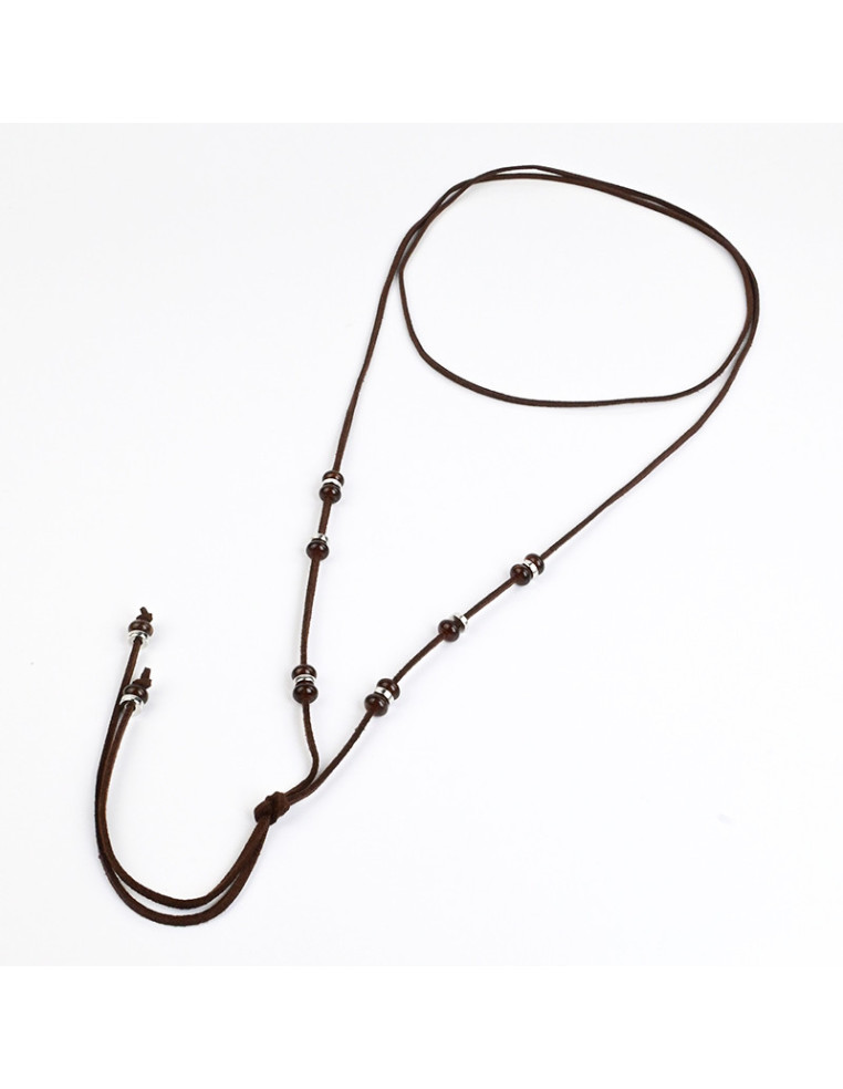 Collar de gamuza de múltiples vueltas, terminales en punteras.