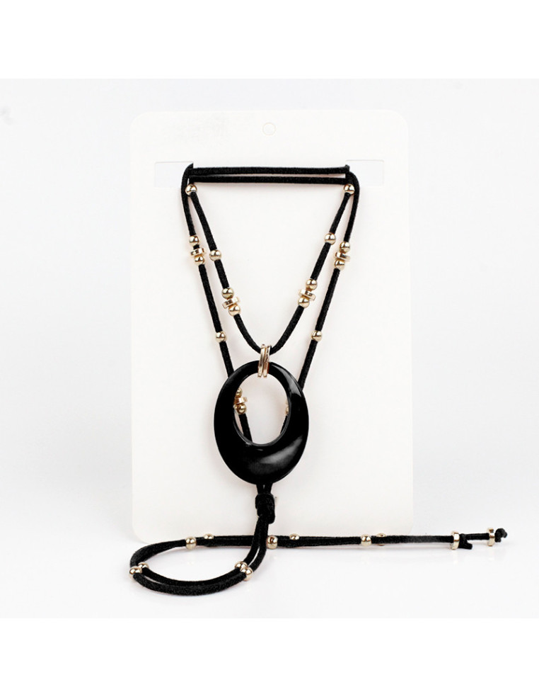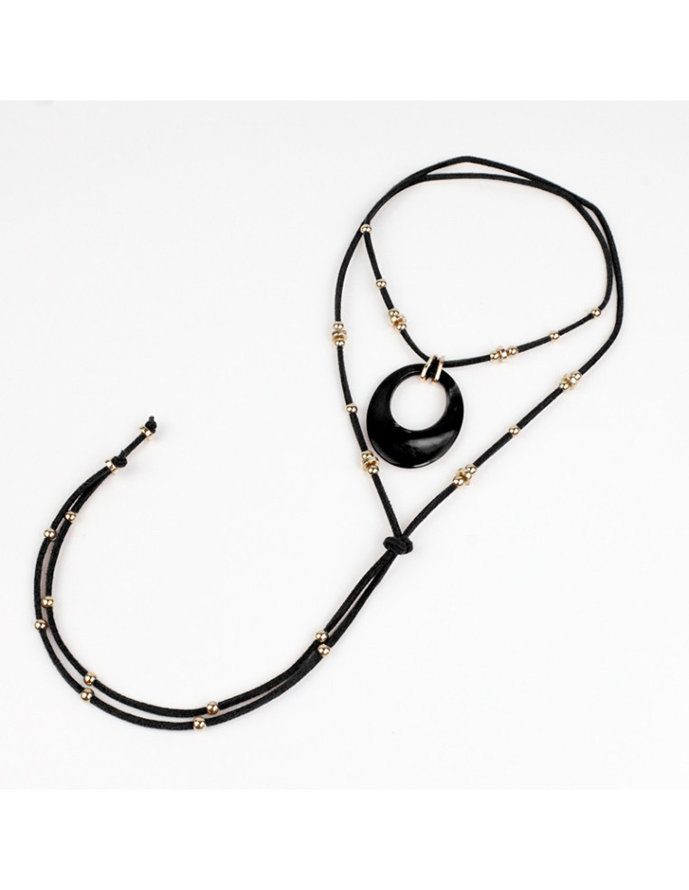 Collar de múltiples vueltas de gamuza intervenido con dije exclusivo de acrílico y piezas pasantes de CCB.