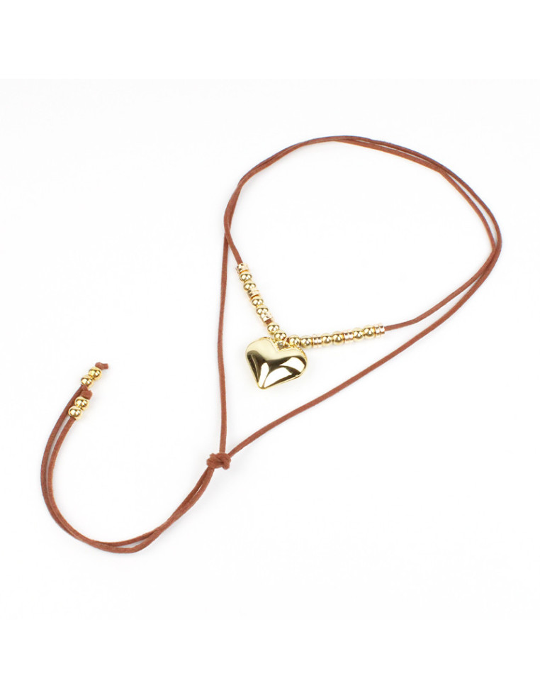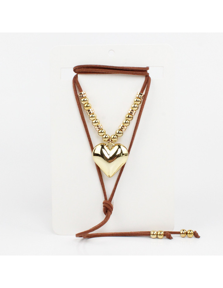Collar de gamuza de múltiples vueltas, con dije de CCB con forma de corazón, piezas pasantes y terminales en punteras. Medida: 140cm de largo.