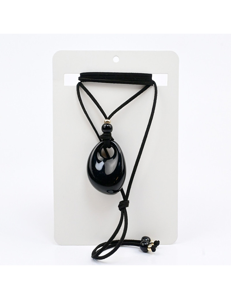 Collar de gamuza de múltiples vueltas, con dije boho de acrílico con forma orgánica y terminales en punteras. Medida: 140cm de largo.