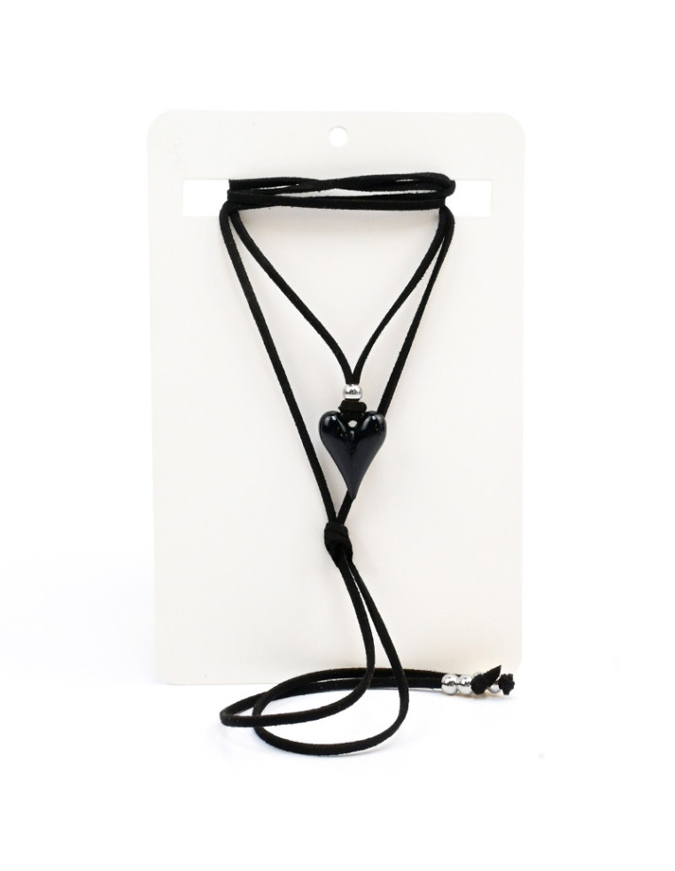 Collar de gamuza de múltiples vueltas, con dije de acrílico con forma de corazón y terminales en punteras. Medida: 140cm de largo.