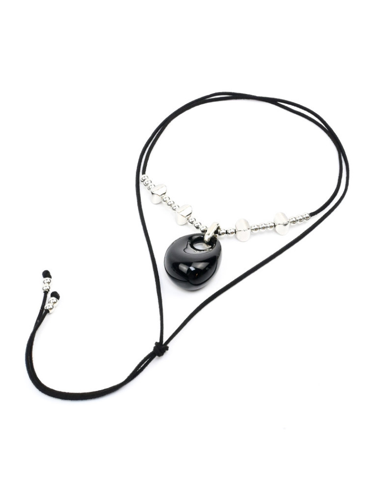Collar de gamuza de múltiples vueltas, con dije orgánico XL de acrílico, enhebrado con pasantes de CCB y terminales en punteras.