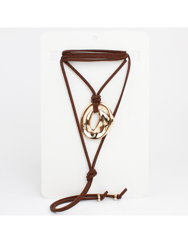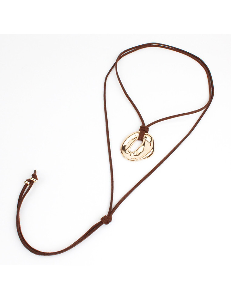 Collar de gamuza de múltiples vueltas, con dije de fundición orgánico y terminales en punteras.