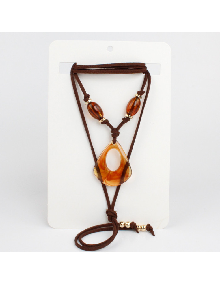Collar de gamuza de múltiples vueltas, con dije de acrílico boho, con piezas enhebradas y terminales en punteras.