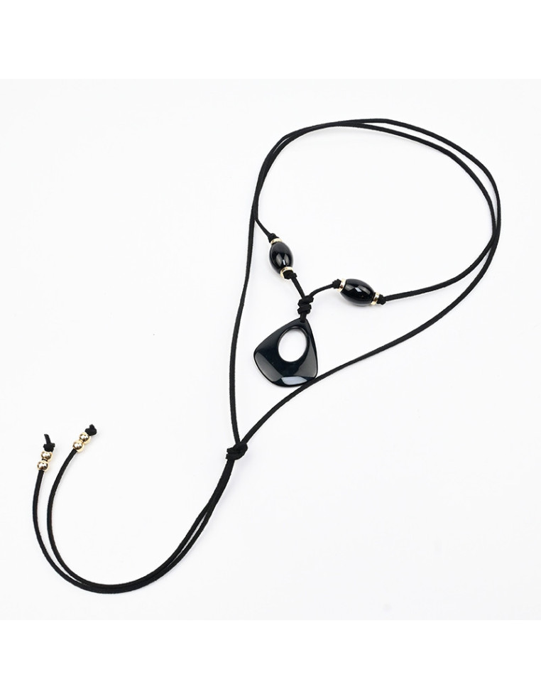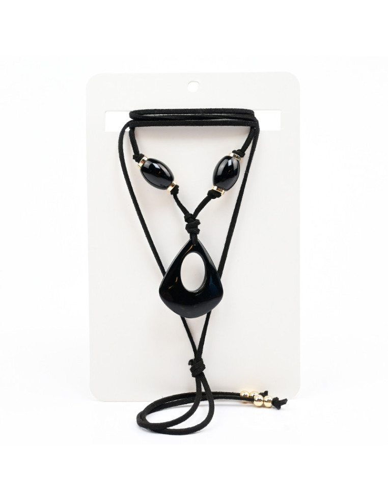 Collar de gamuza de múltiples vueltas, con dije de acrílico boho, con piezas enhebradas y terminales en punteras.