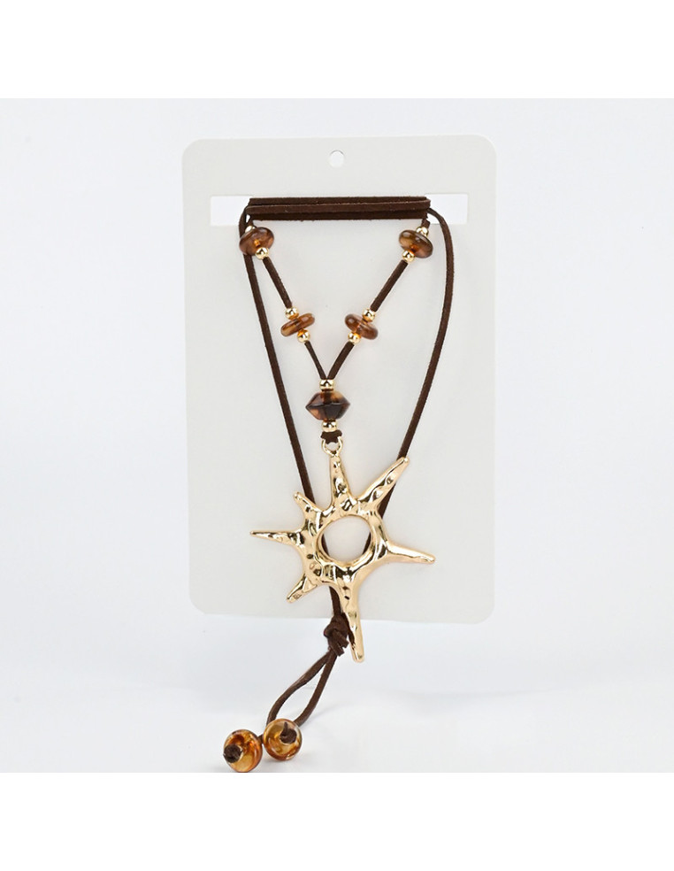 Collar de gamuza de múltiples vueltas, con dije de fundición con forma de sol y terminales en punteras.