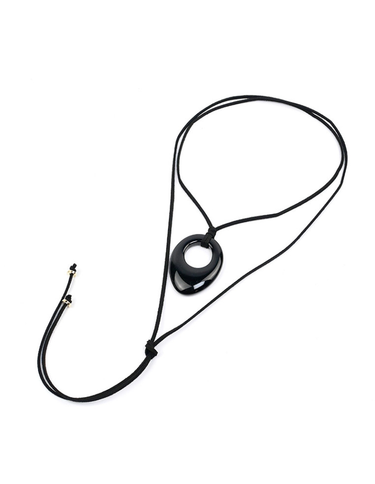 Collar de gamuza de múltiples vueltas, con dije de acrílico y terminales en punteras.