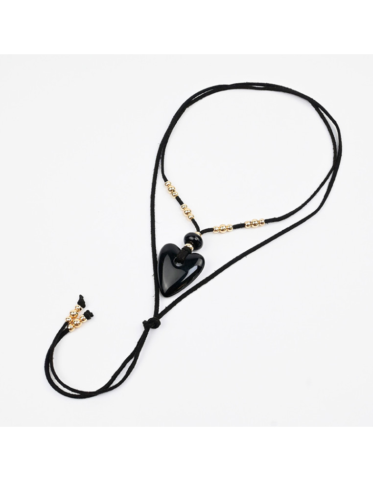 Collar de gamuza de múltiples vueltas, con dije de acrílico con forma de corazón y terminales en punteras.