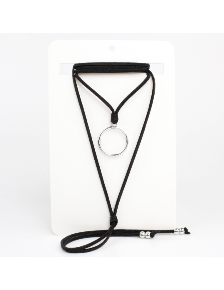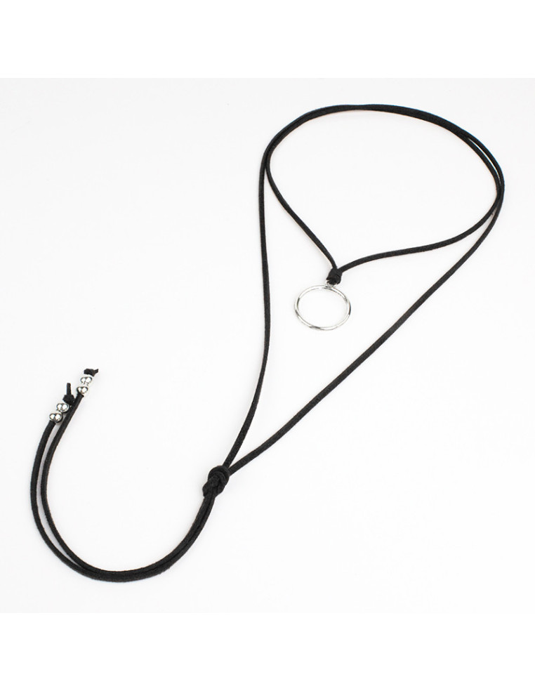 Collar de gamuza de múltiples vueltas, con dije de fundición circular y terminales en punteras.