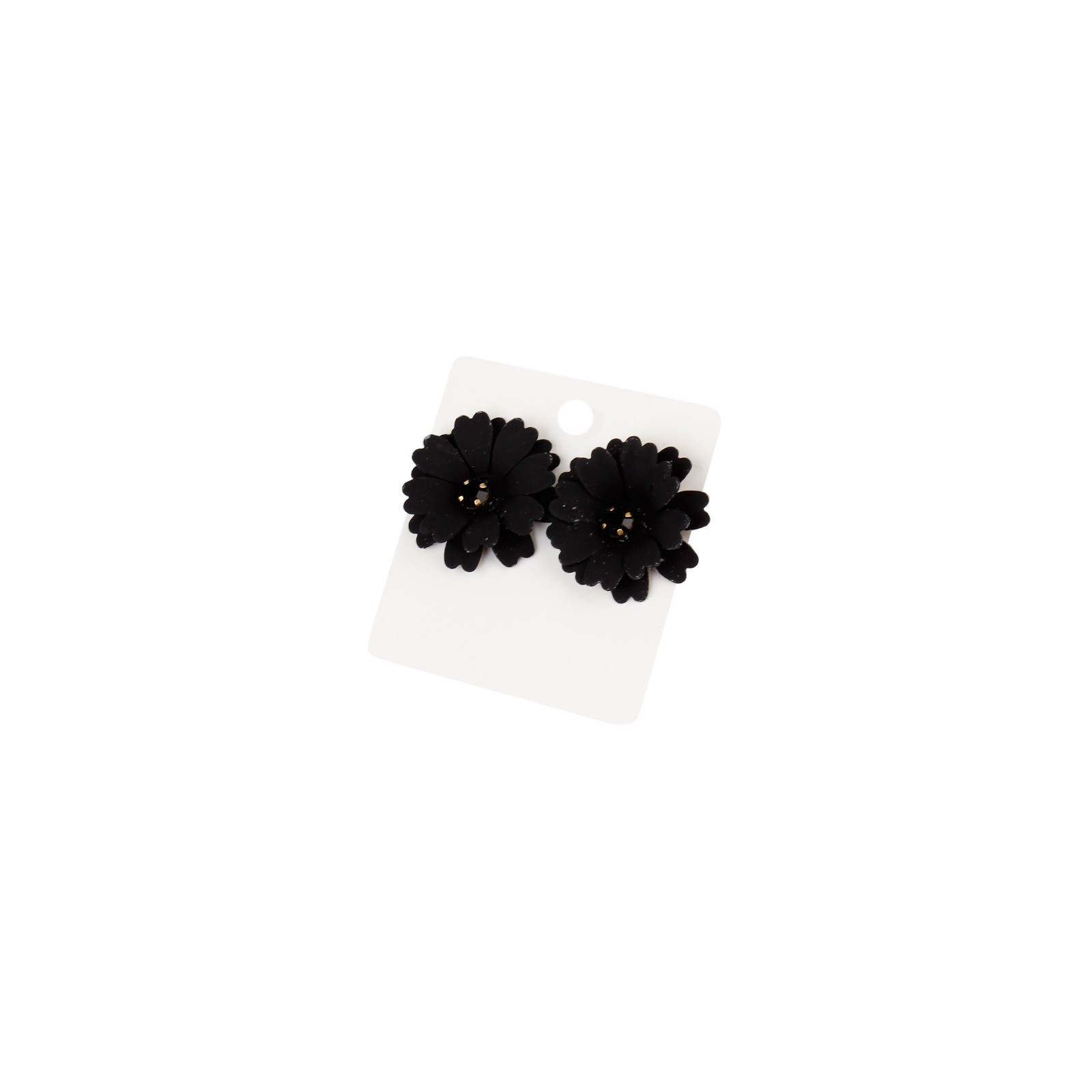 Aro trendy de piezas exclusivas en forma de flor intervenidas con cristal. Largo: 3 cm.
