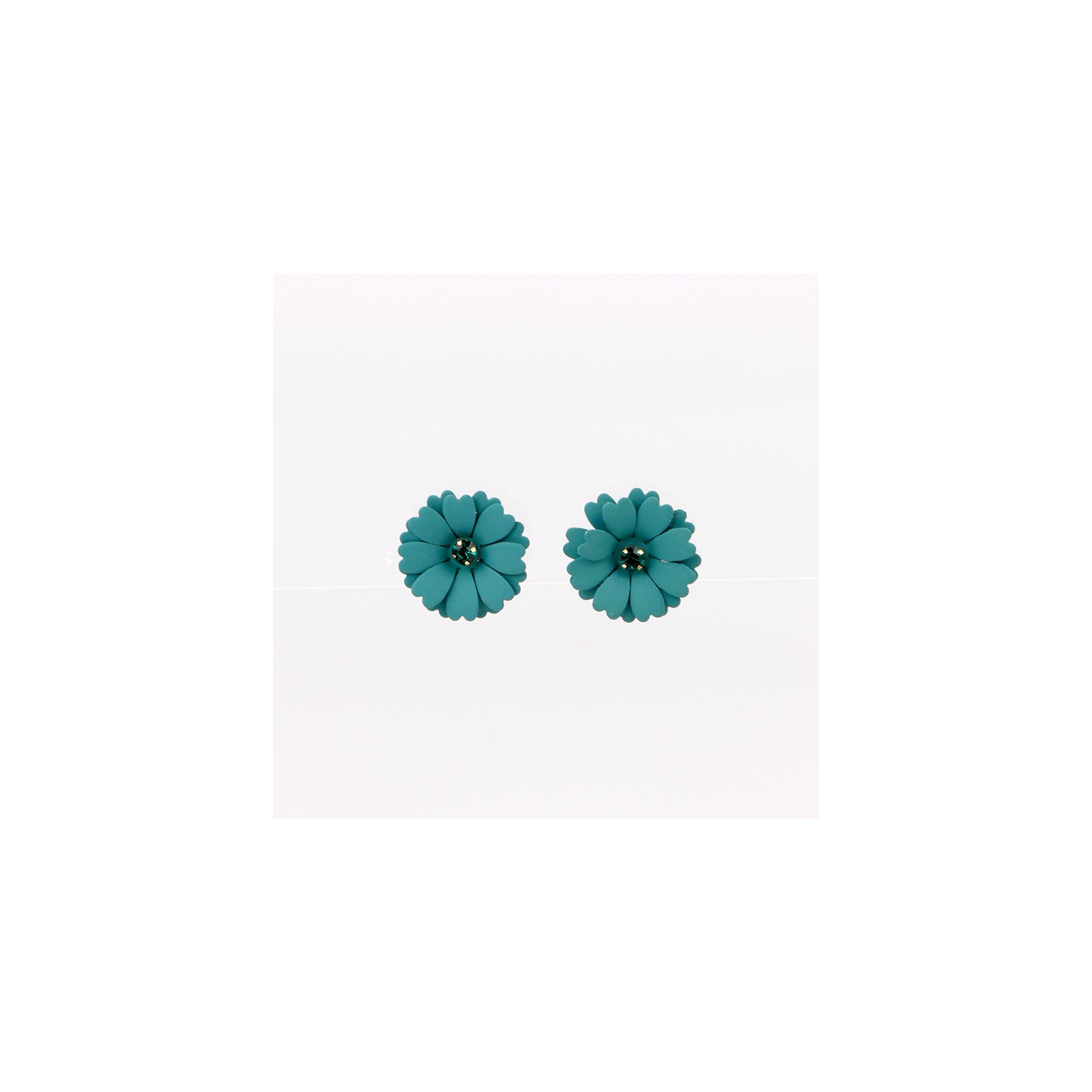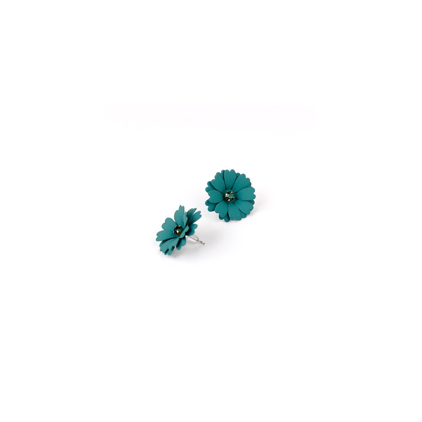 Aro trendy de piezas exclusivas en forma de flor intervenidas con cristal. Largo: 3 cm.