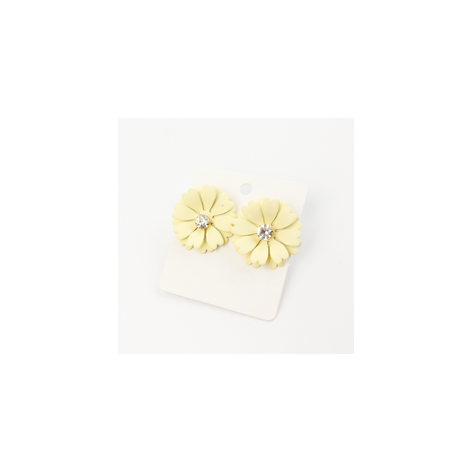 Aro trendy de piezas exclusivas en forma de flor intervenidas con cristal. Largo: 3 cm.