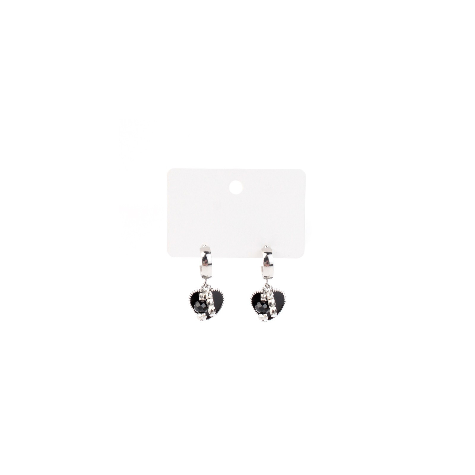 Aro argolla con rocas de cristal y dije exclusivo en forma de corazón pintado a mano níquel.
