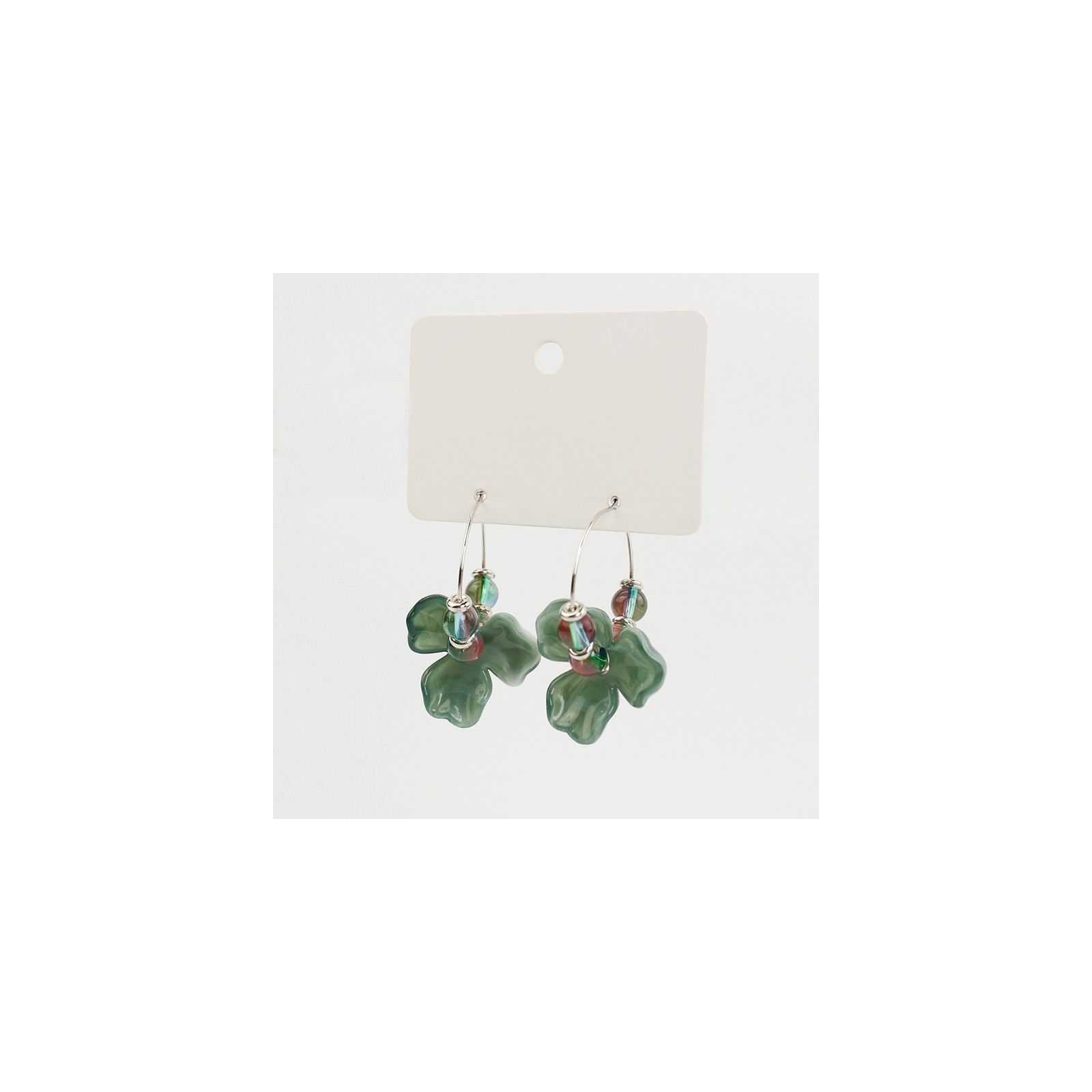 Aro de argolla exclusiva enhebrada con bolitas de vidrio diferenciadas y piezas de acrílicos con forma de flor.