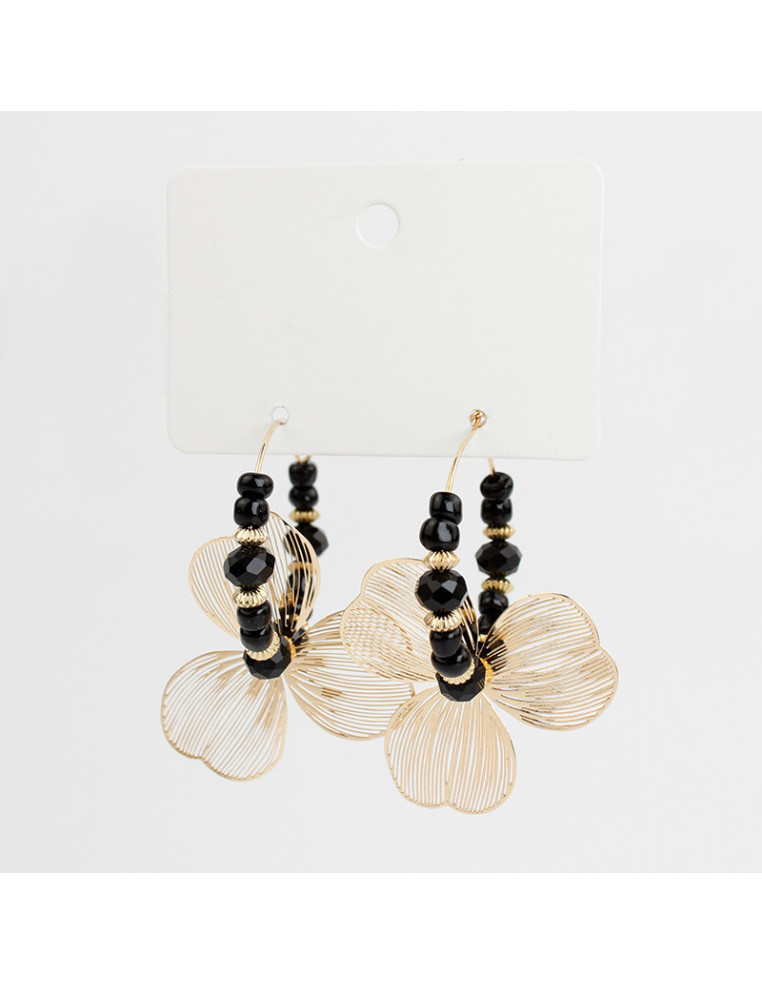 Aro trendy de argollas con piezas exclusivas de metal con forma de pétalos de flor calada combinados con rocas de cristal.