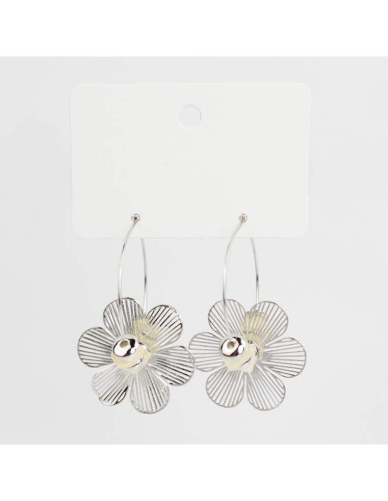 Aro argolla trendy de 30mm con piezas exclusivas de metal con forma de flor combinadas con mostacillas.