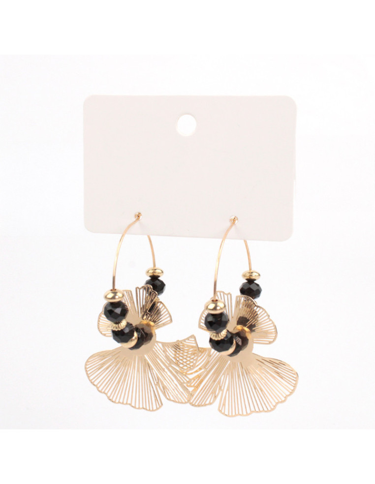 Aro de argolla exclusiva con pieza de metal con forma de flor filigranada y rocas de cristal