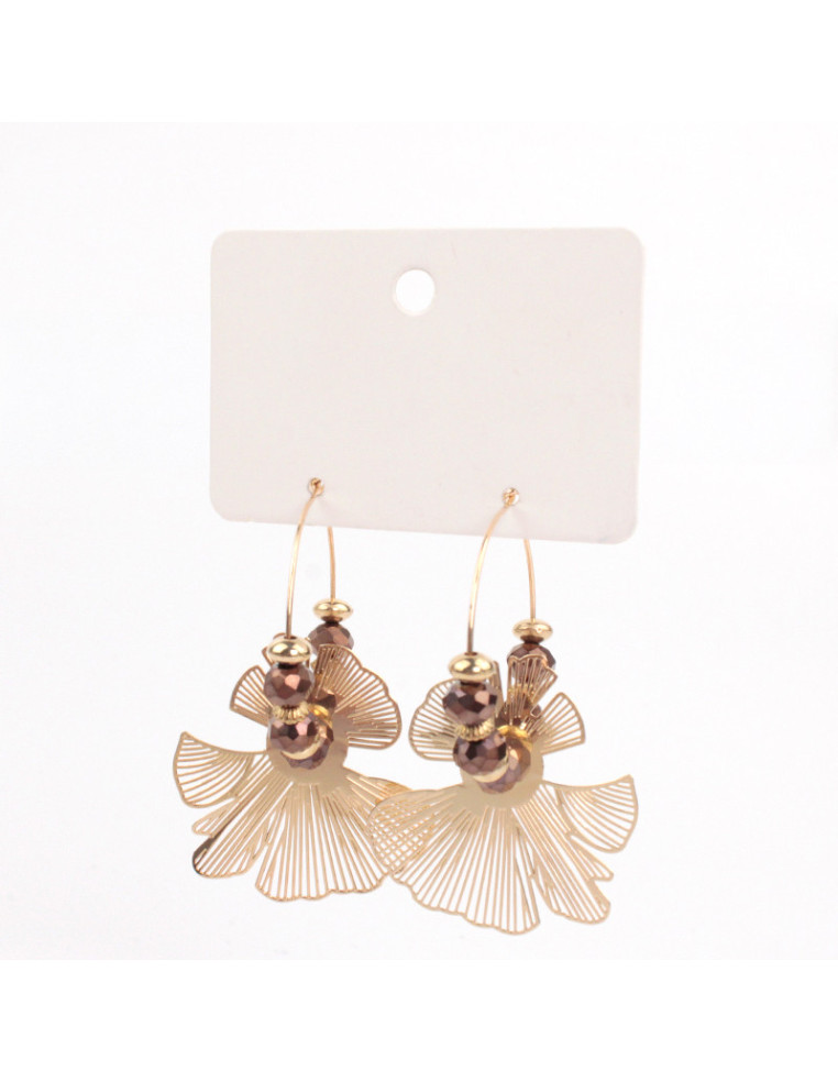 Aro de argolla exclusiva con pieza de metal con forma de flor filigranada y rocas de cristal