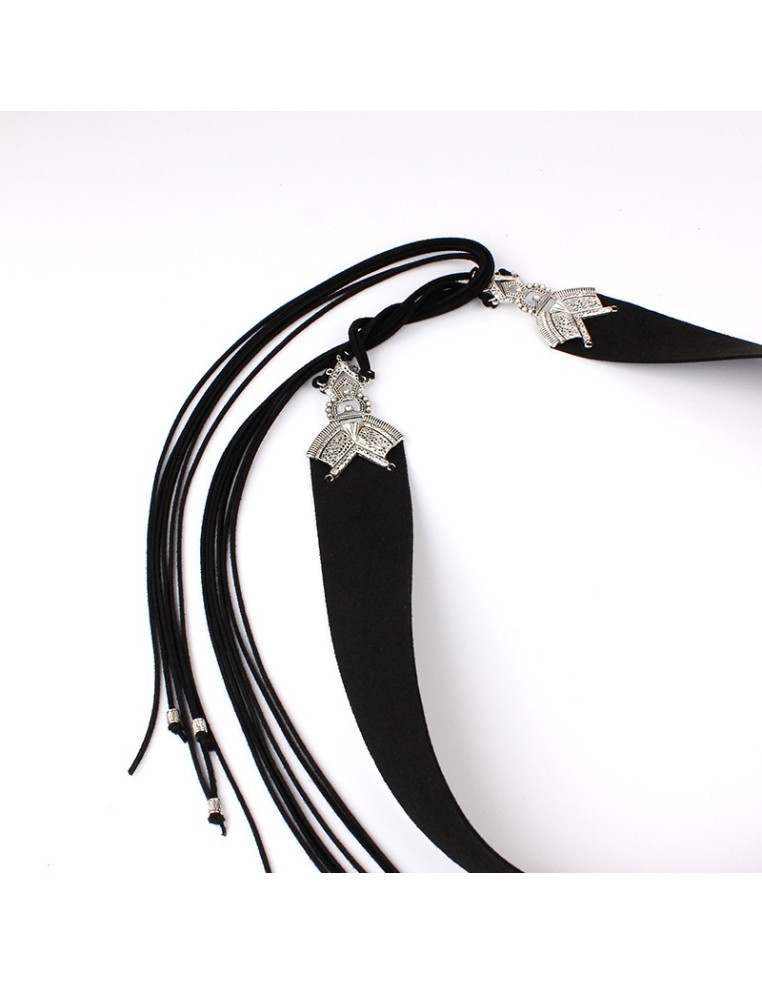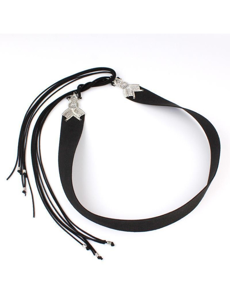 Cinturón de gamuza con piezas exclusivas boho de fundición níquel.