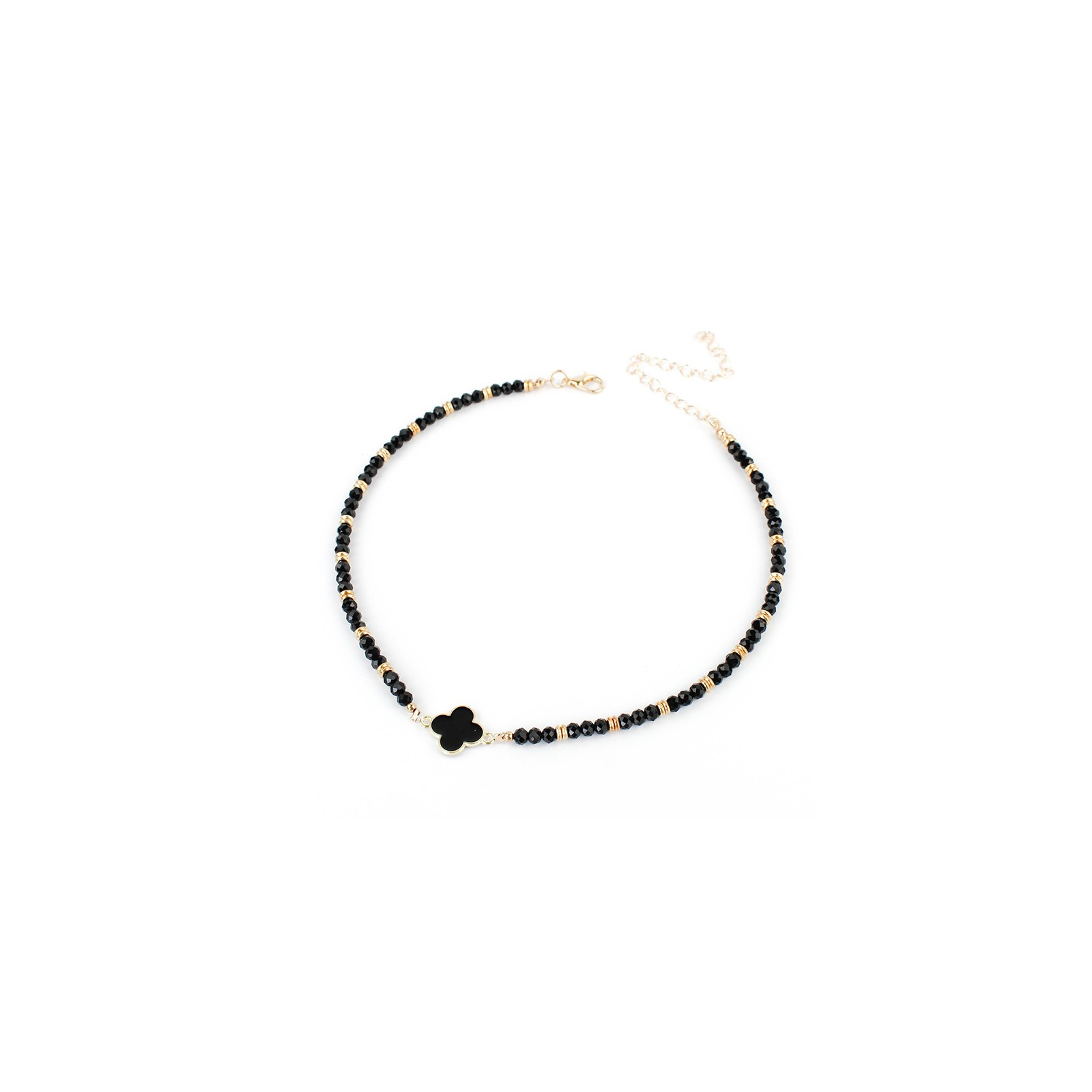 Collar de rocas de cristal con dije exclusivo pintado a mano dorado.