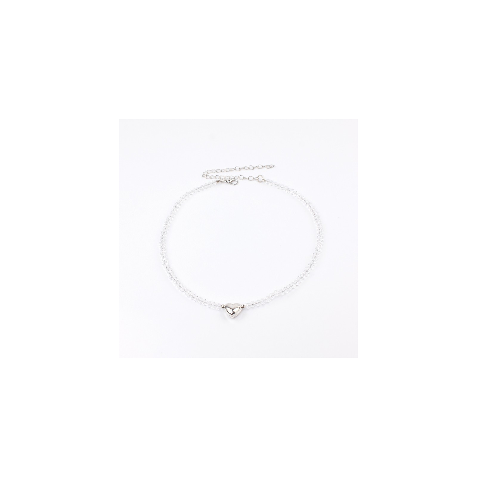 Collar corto de rocas de cristal y dije exclusivo pasante con forma de corazón níquel.