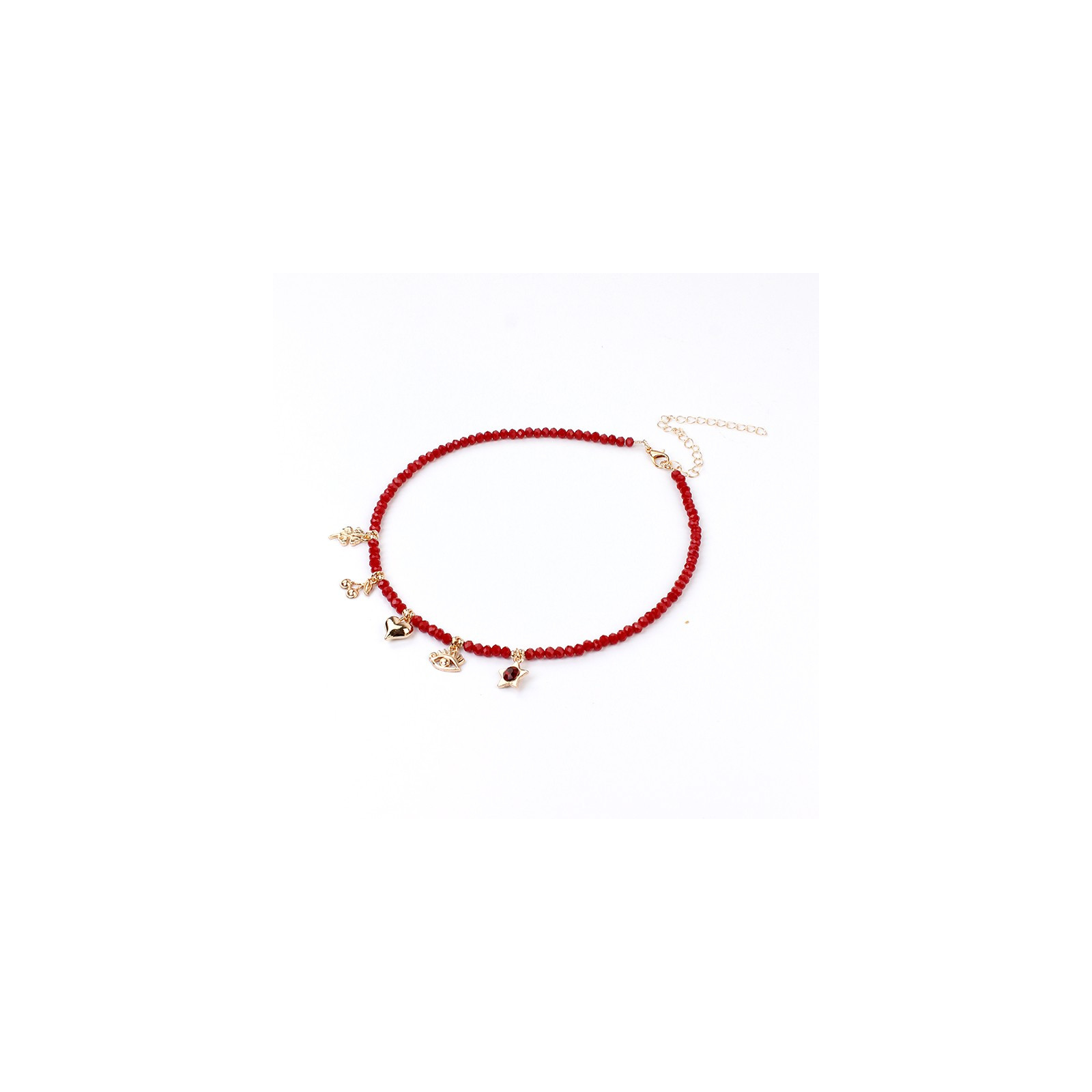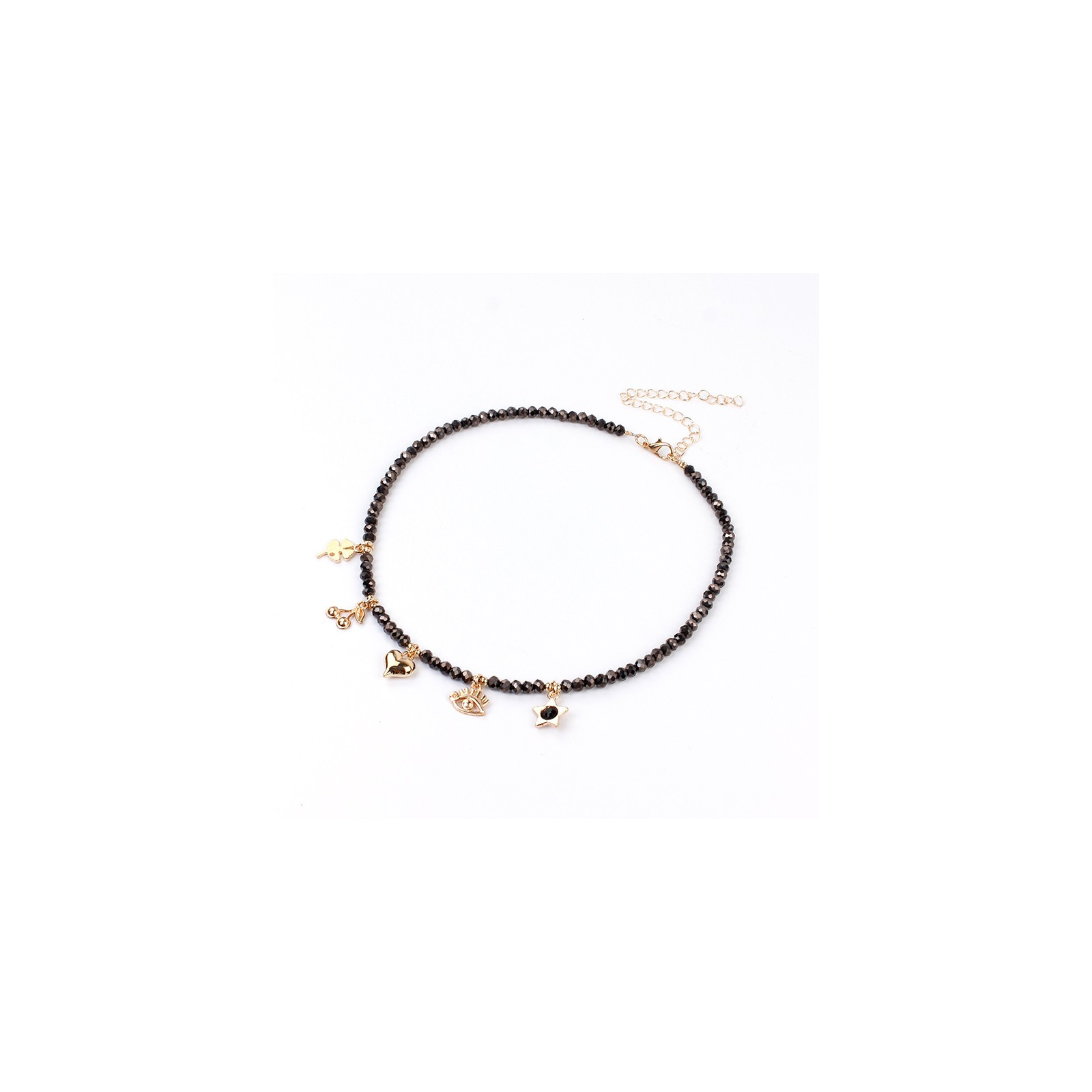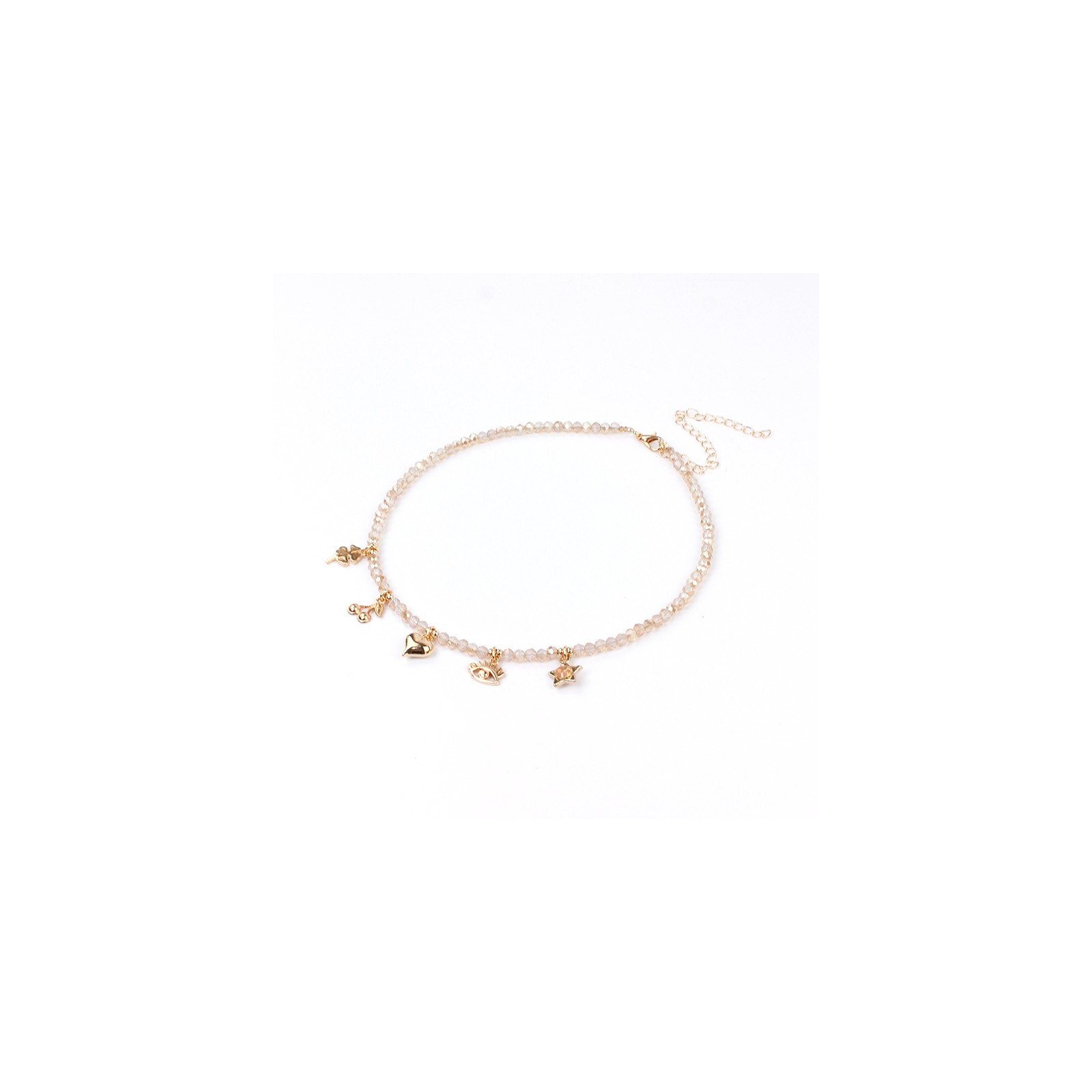 Collar corto de roca de cristal y múltiples charms exclusivos dorados.