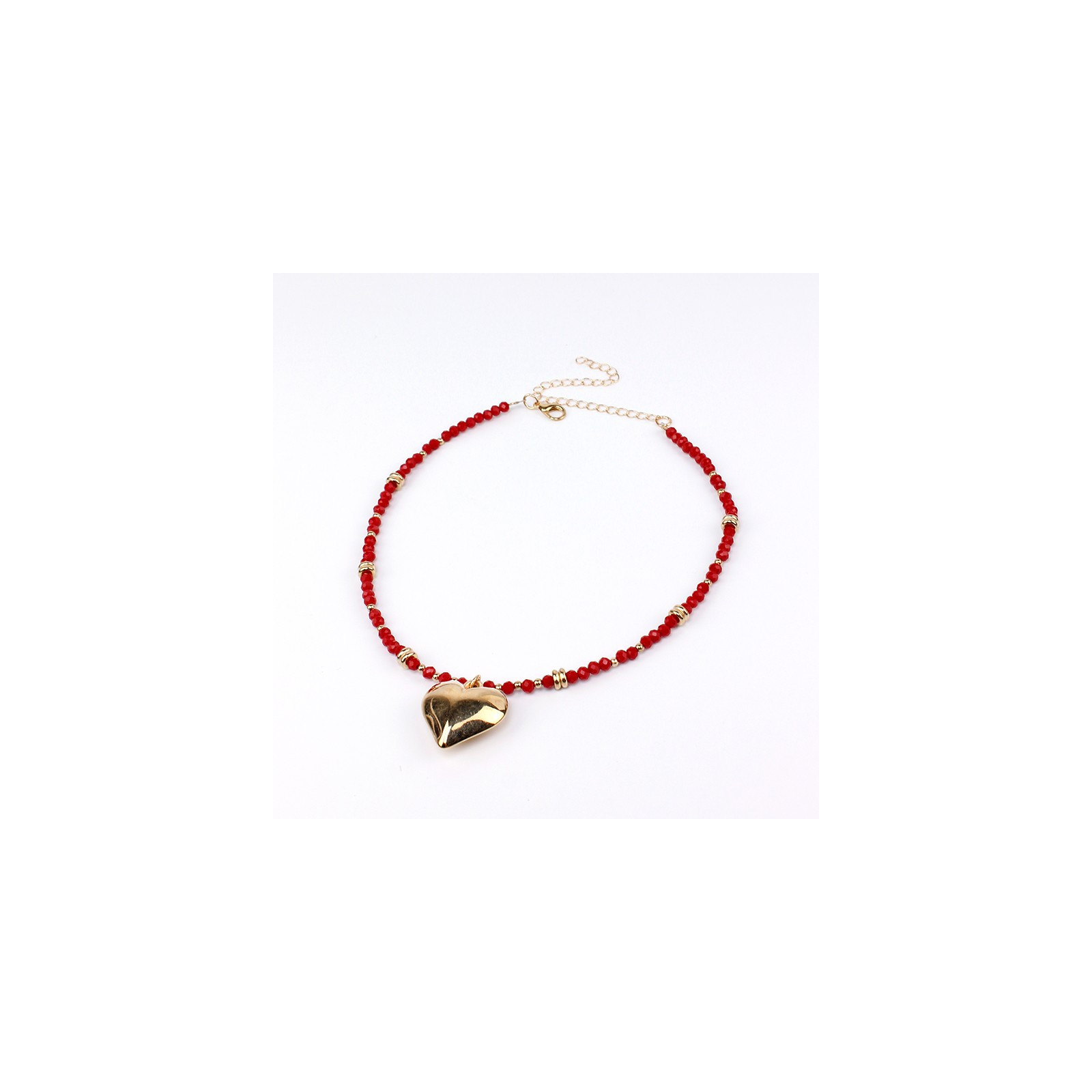 Collar corto de roca de cristal y pasantes dorados diferenciados con dije exclusivo de ccb con forma de corazón.