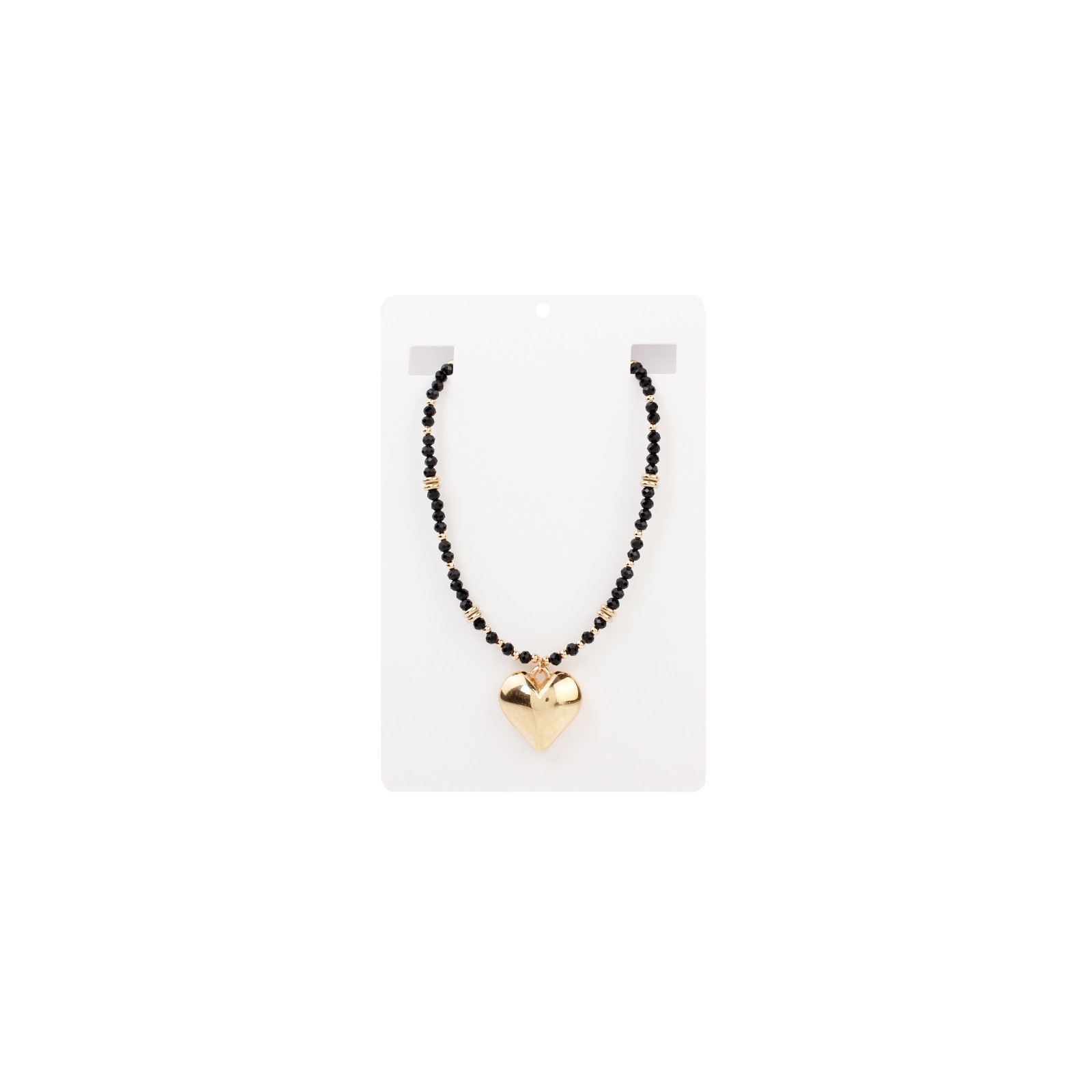 Collar corto de roca de cristal y pasantes dorados diferenciados con dije exclusivo de ccb con forma de corazón.