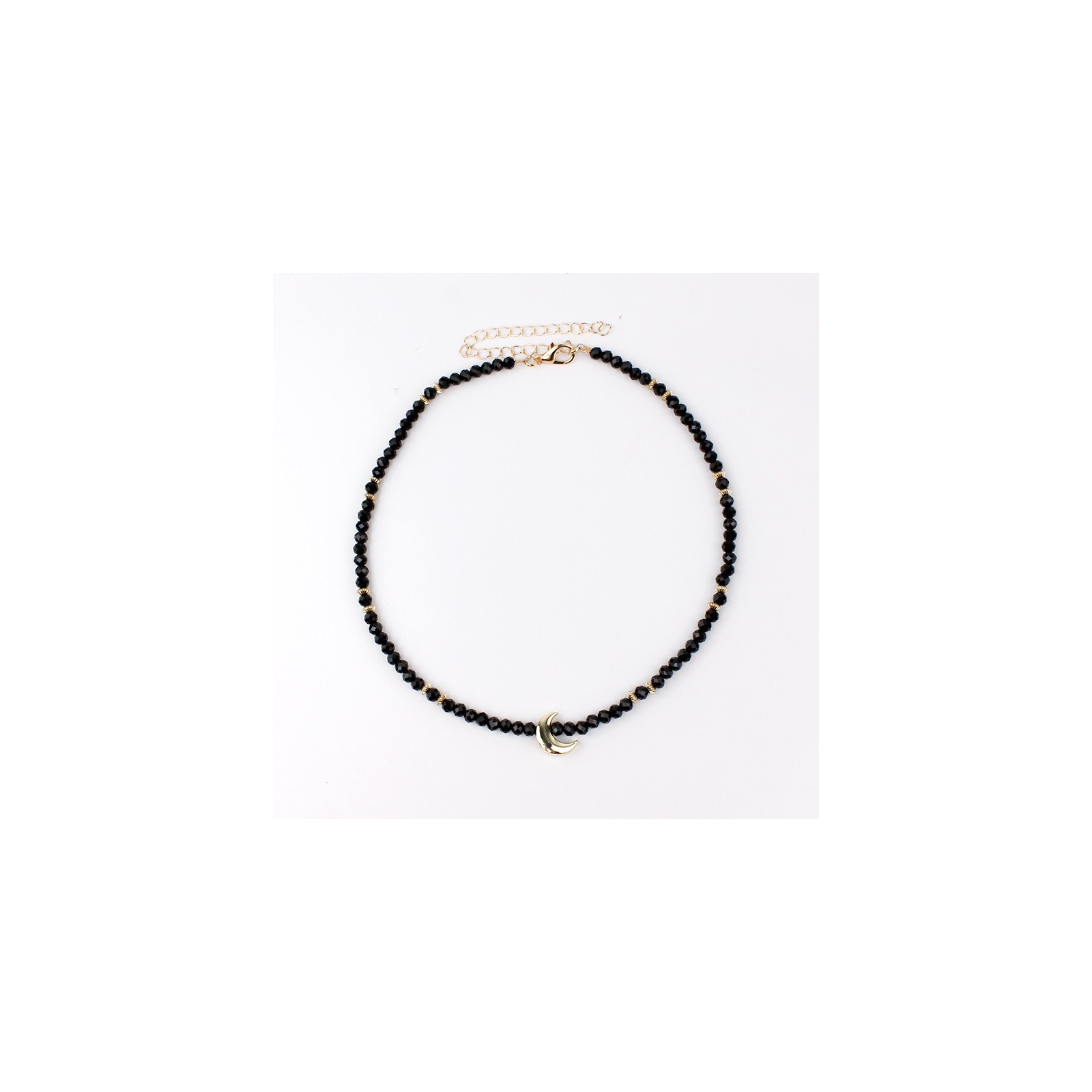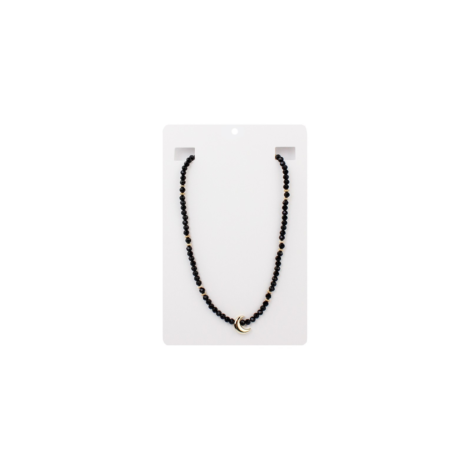 Collar corto de rocas de cristal, piezas pasantes doradas y dije exclusivo con forma de luna.
