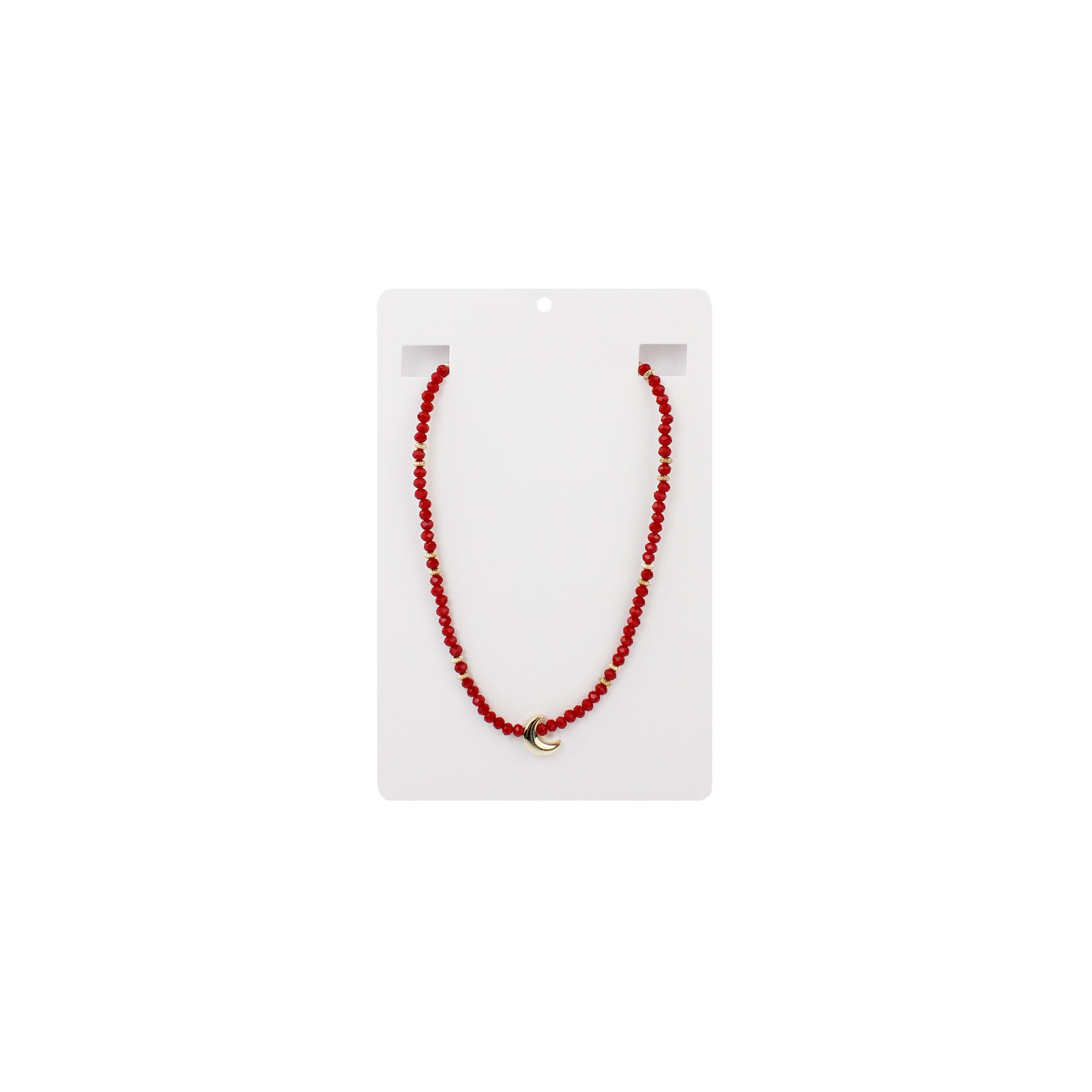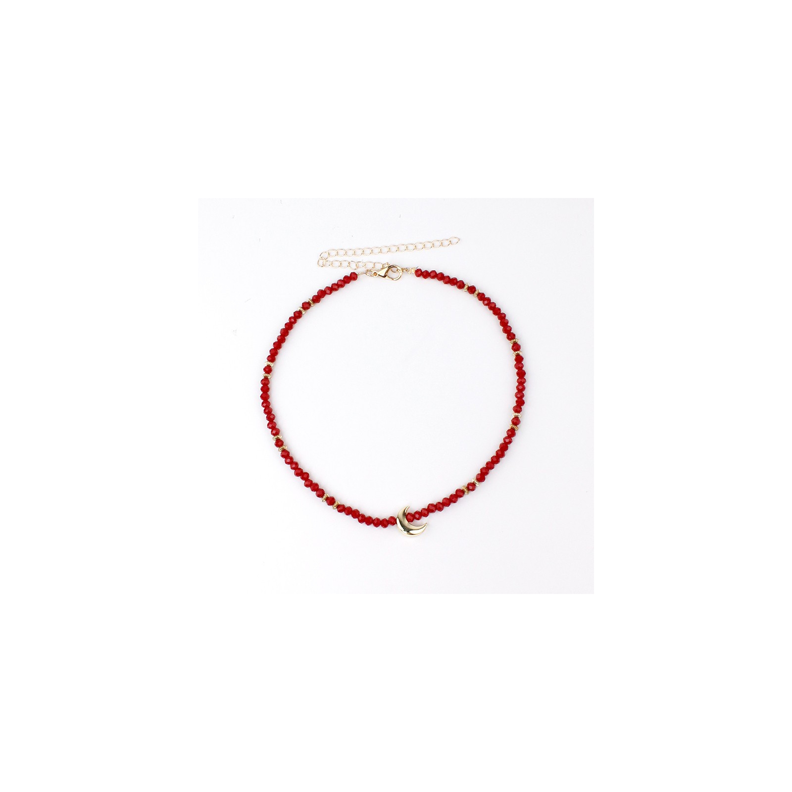 Collar corto de rocas de cristal, piezas pasantes doradas y dije exclusivo con forma de luna.