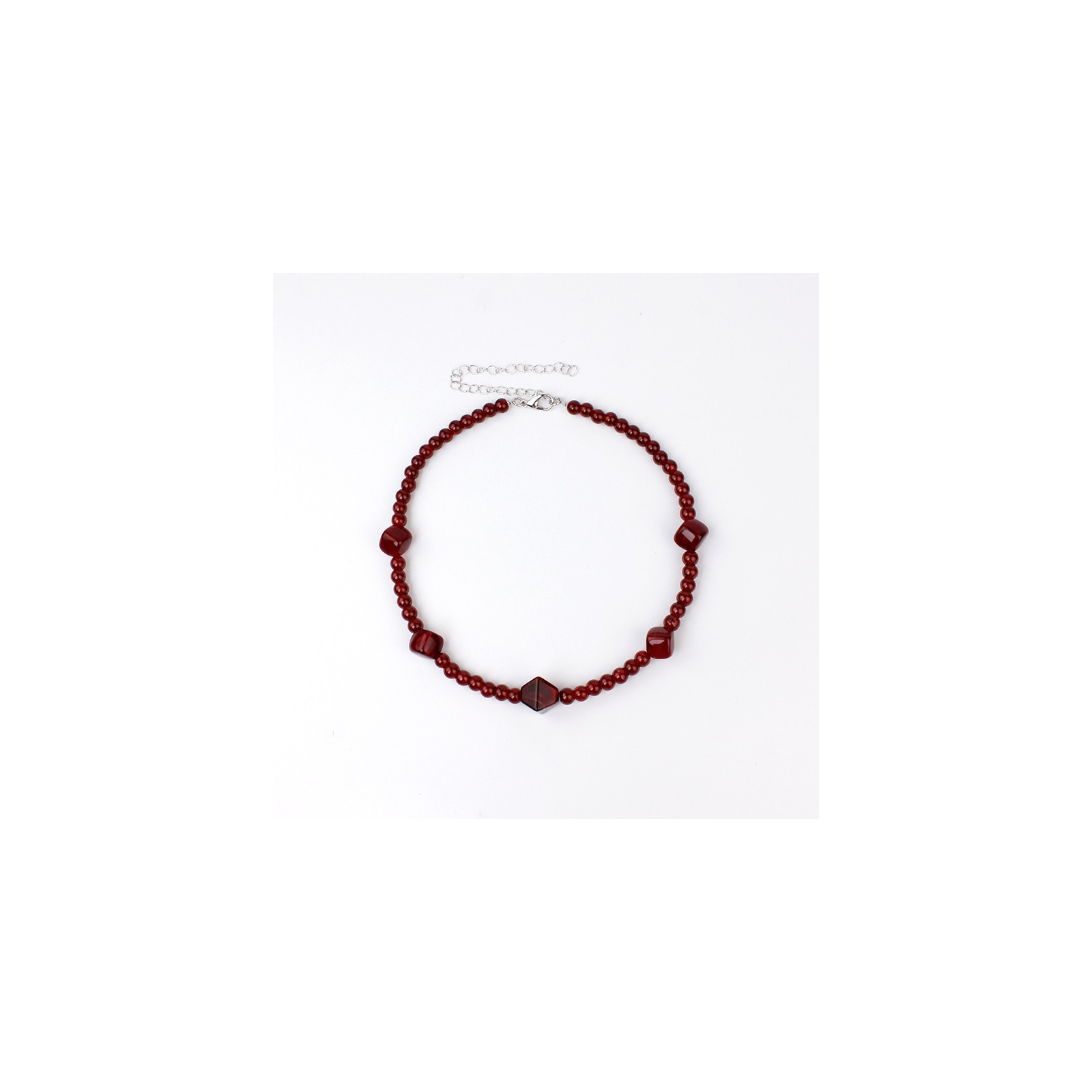 Collar corto de bolitas de vidrio y piezas de acrílico exclusivas.