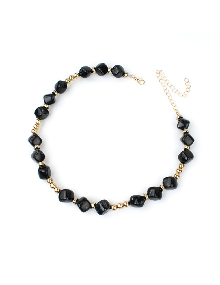 Collar corto de piezas exclusivas de acrílico y piezas pasantes de CCB dorado.