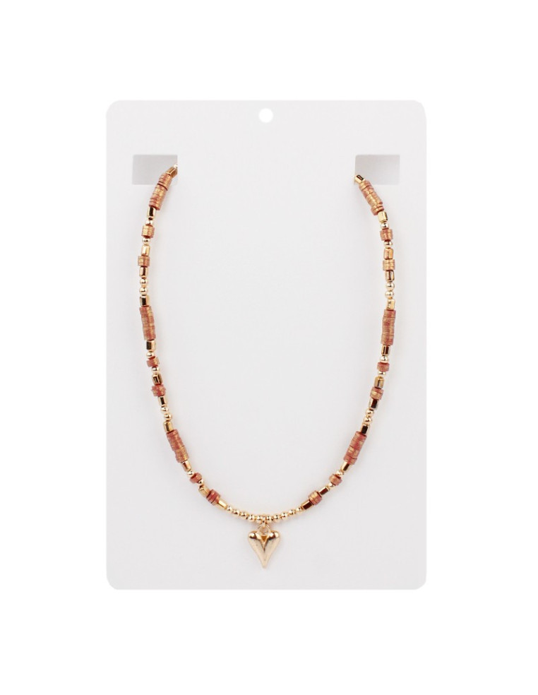 Collar de  fimo perlado y piezas de ccb diferenciados y dije exclusivo con forma de corazón.