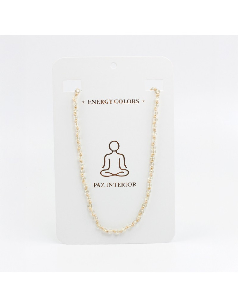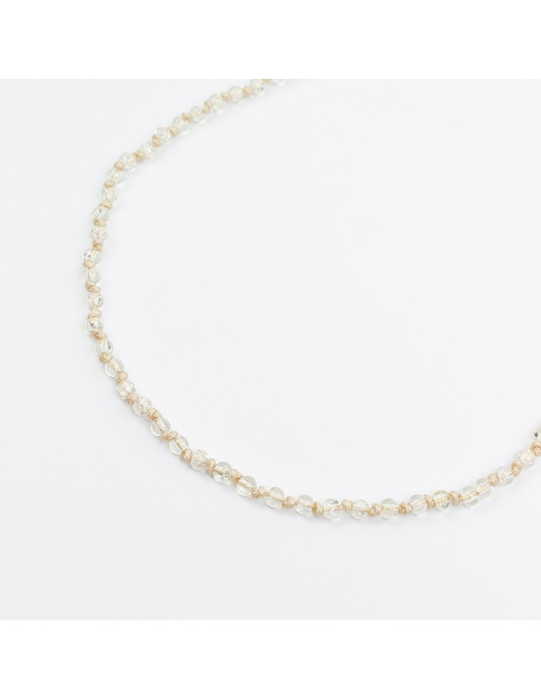 Collar corto de hilo con cierre en macramé y bolitas de vidrio.