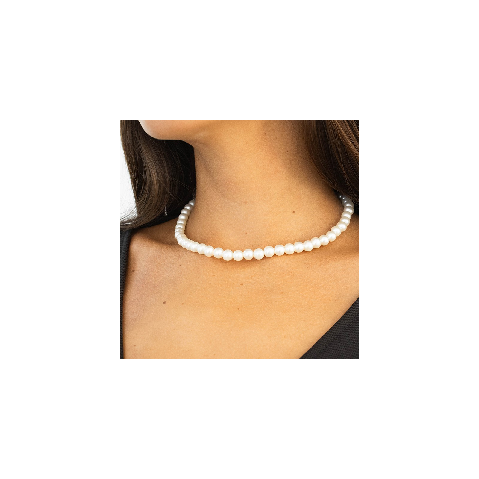 Collar corto de perlas blancas de 10mm.
