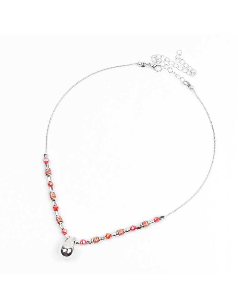 Collar de cadena diferenciada combinado con piezas pasantes de CCB, roca de cristal, fimo perlado y dije exclusivo con forma de gota níquel.