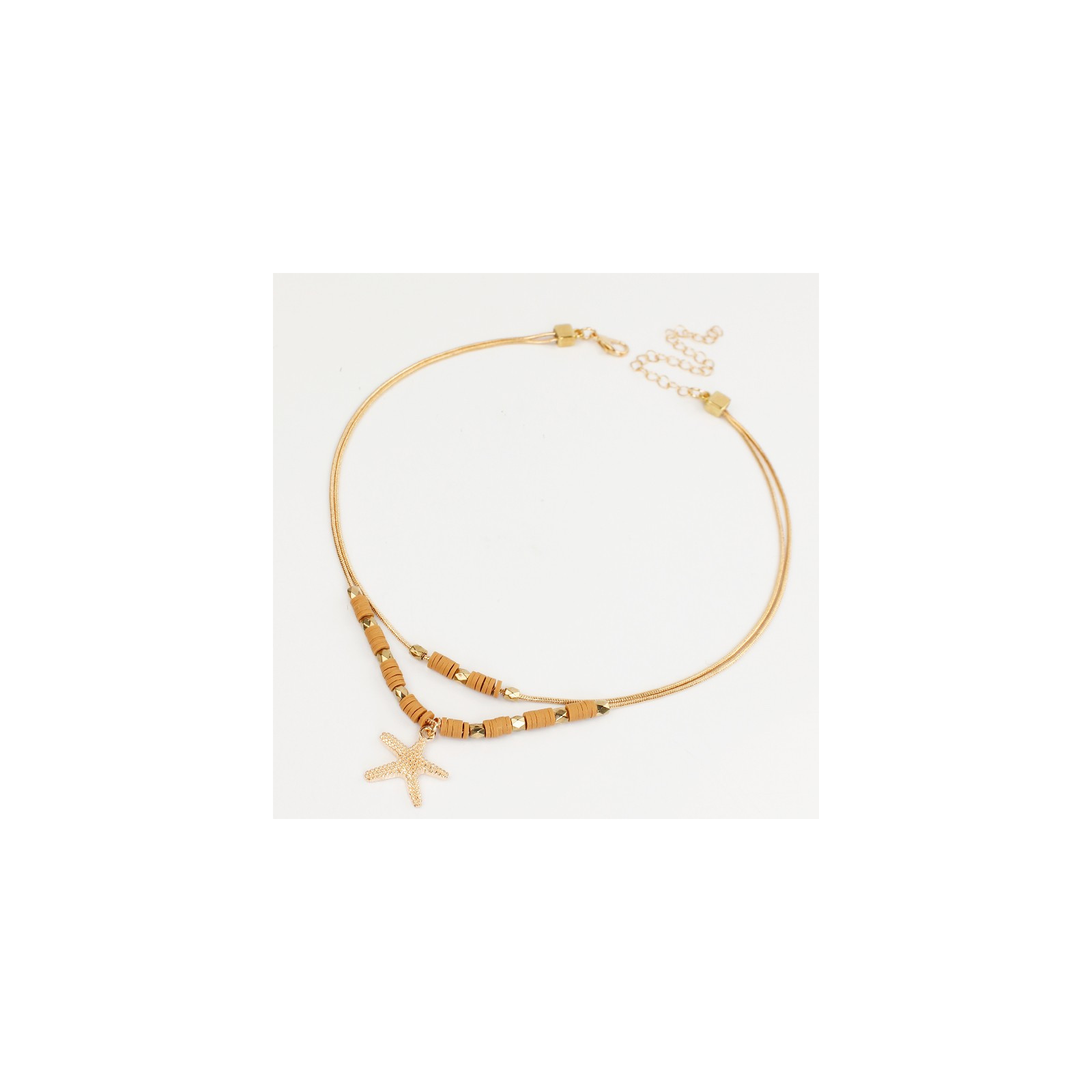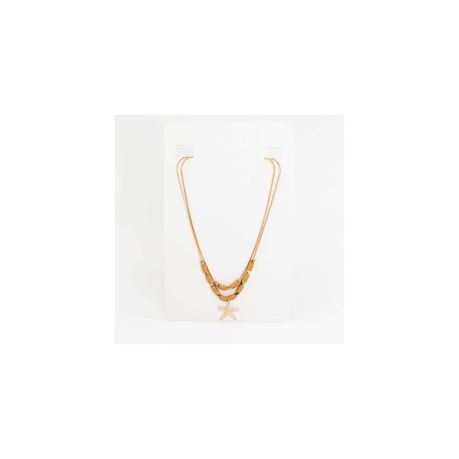 Collar de doble caída de cadena diferenciadas intervenidas con piezas pasantes biseladas de CCB y fimo.