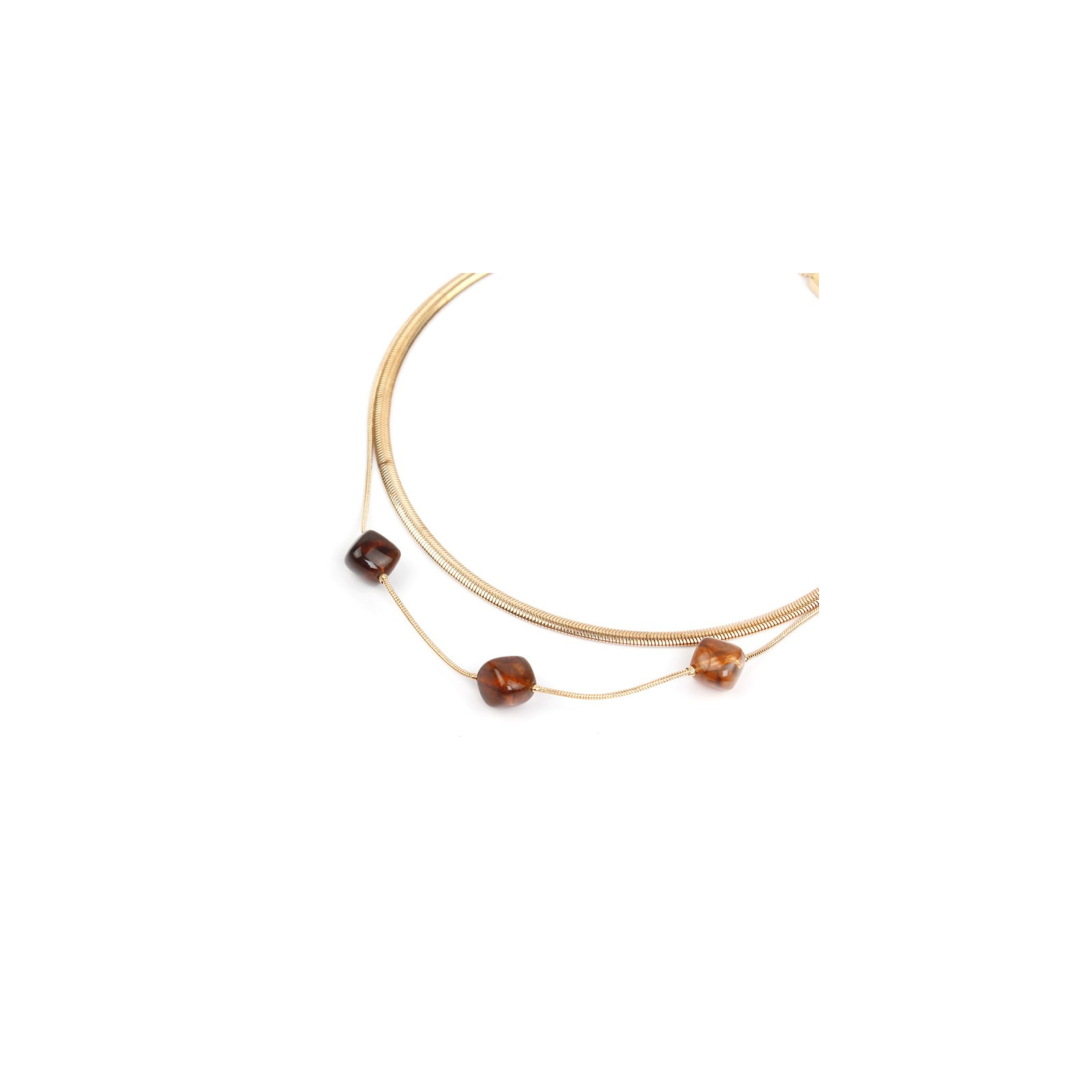 Collar de doble caída de cadena diferenciada con dije exclusivo de acrílico.