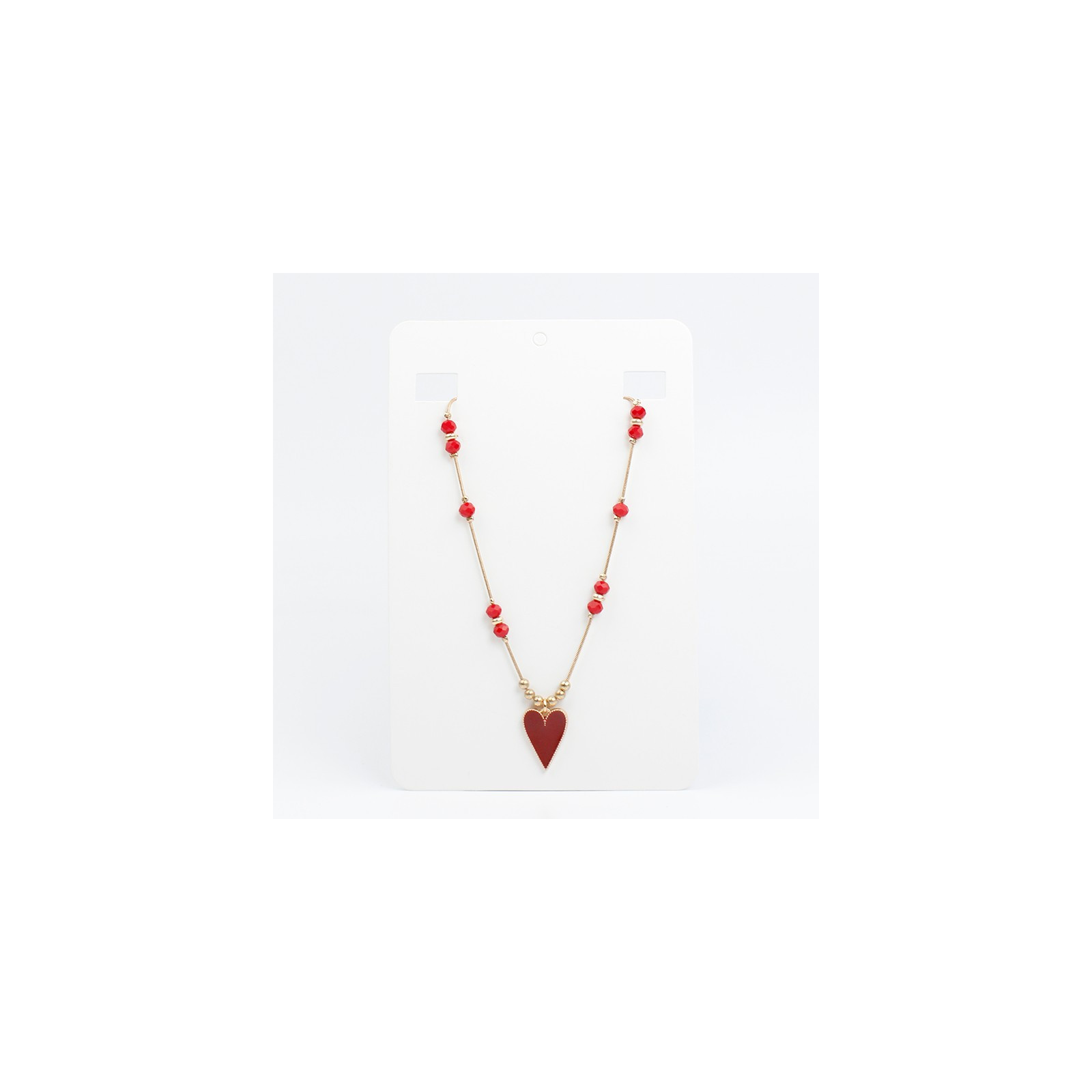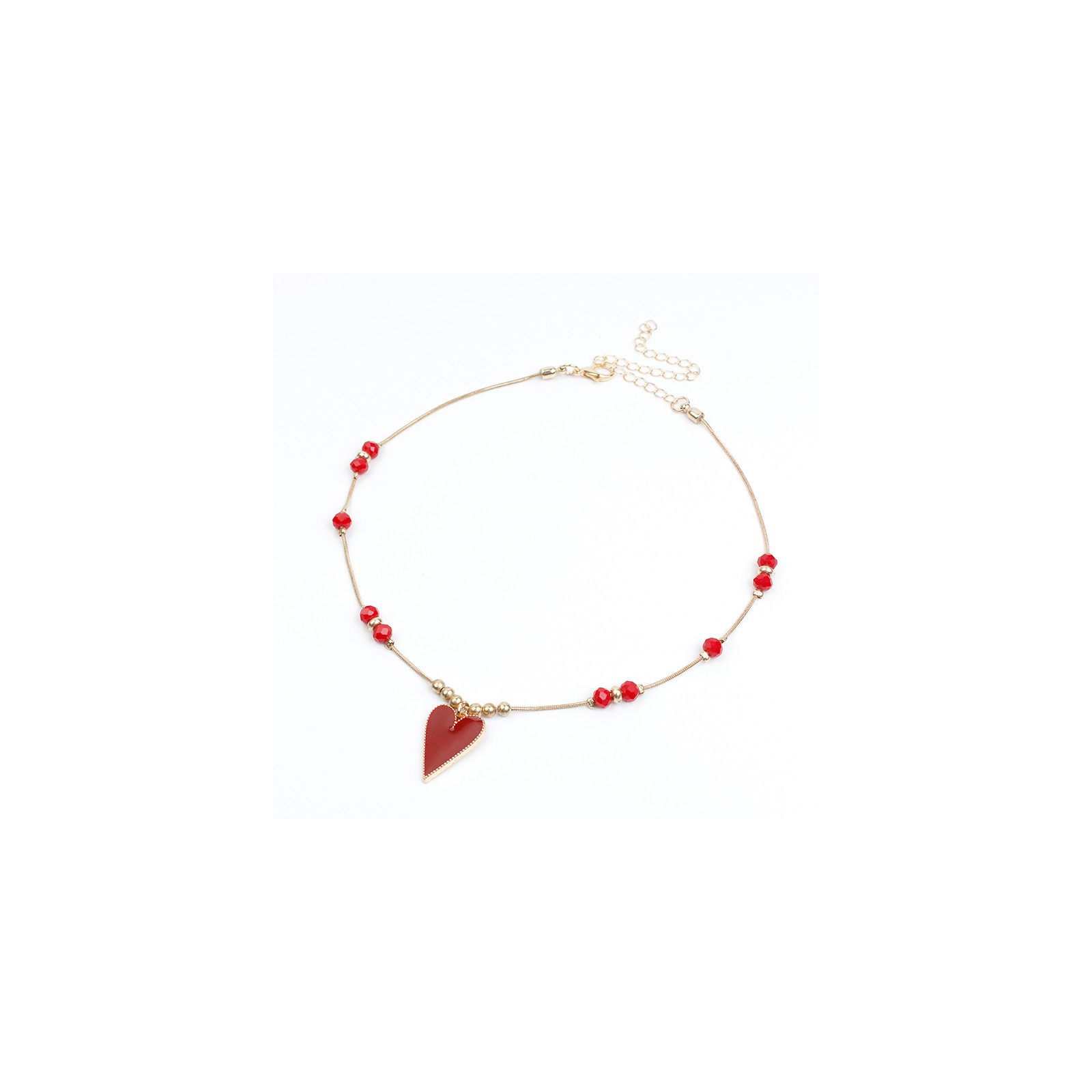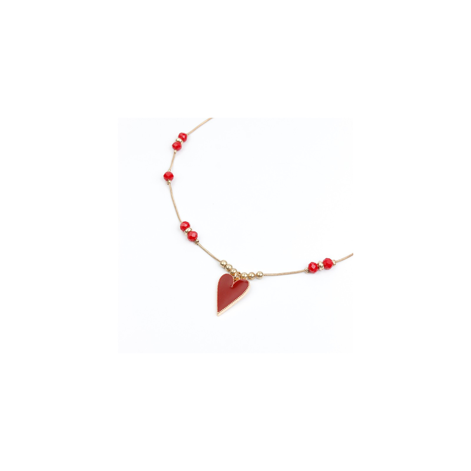 Collar de cadena diferenciada intervenida con rocas de cristal, piezas pasantes de CCb y dije exclusivo pintado a mano con forma de corazón.
