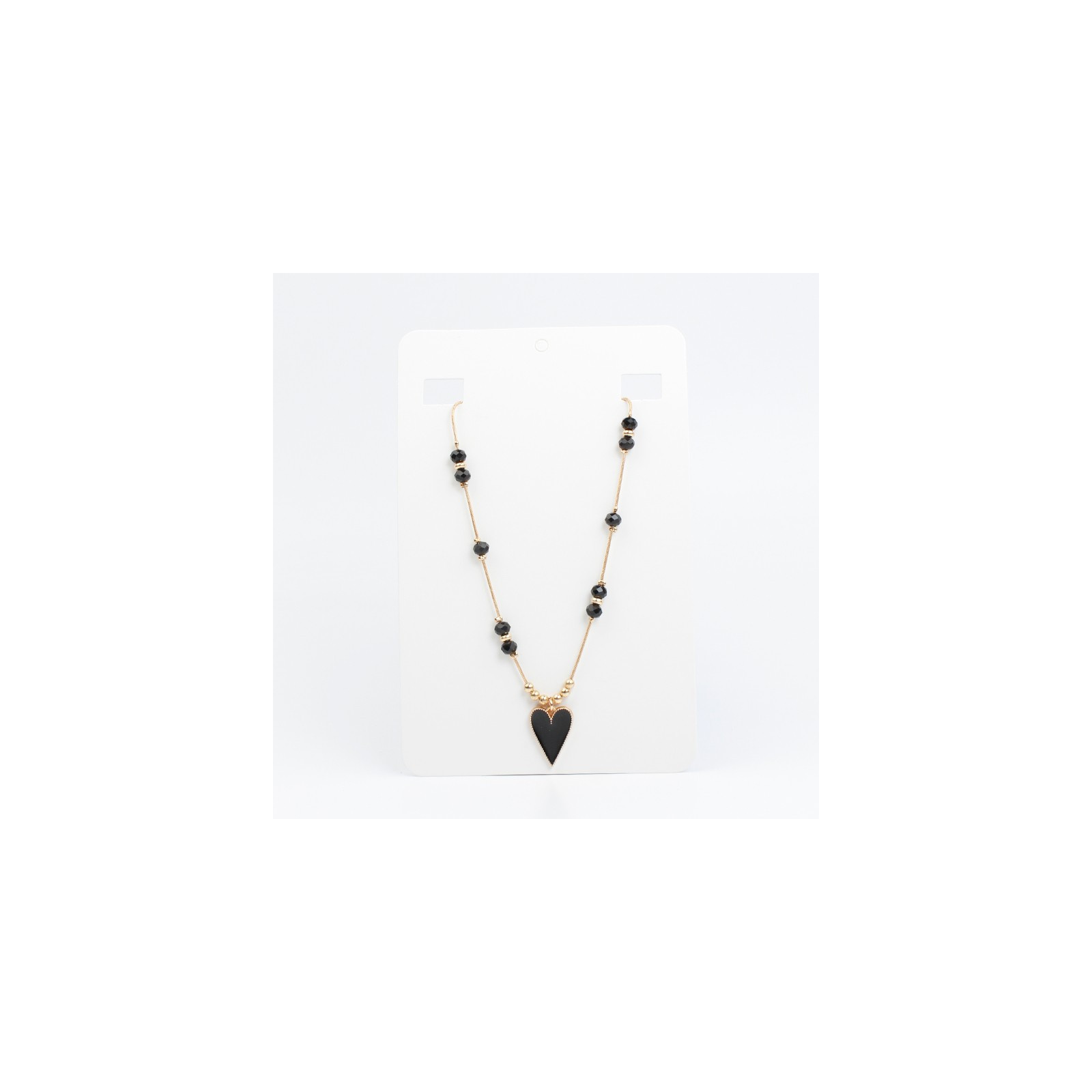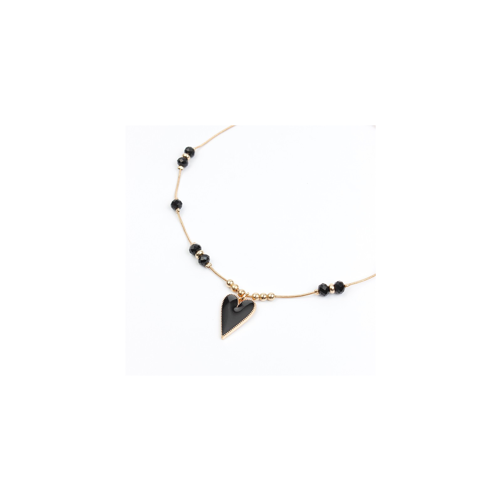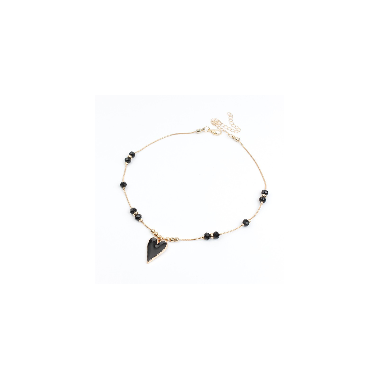 Collar de cadena diferenciada intervenida con rocas de cristal, piezas pasantes de CCb y dije exclusivo pintado a mano con forma de corazón.