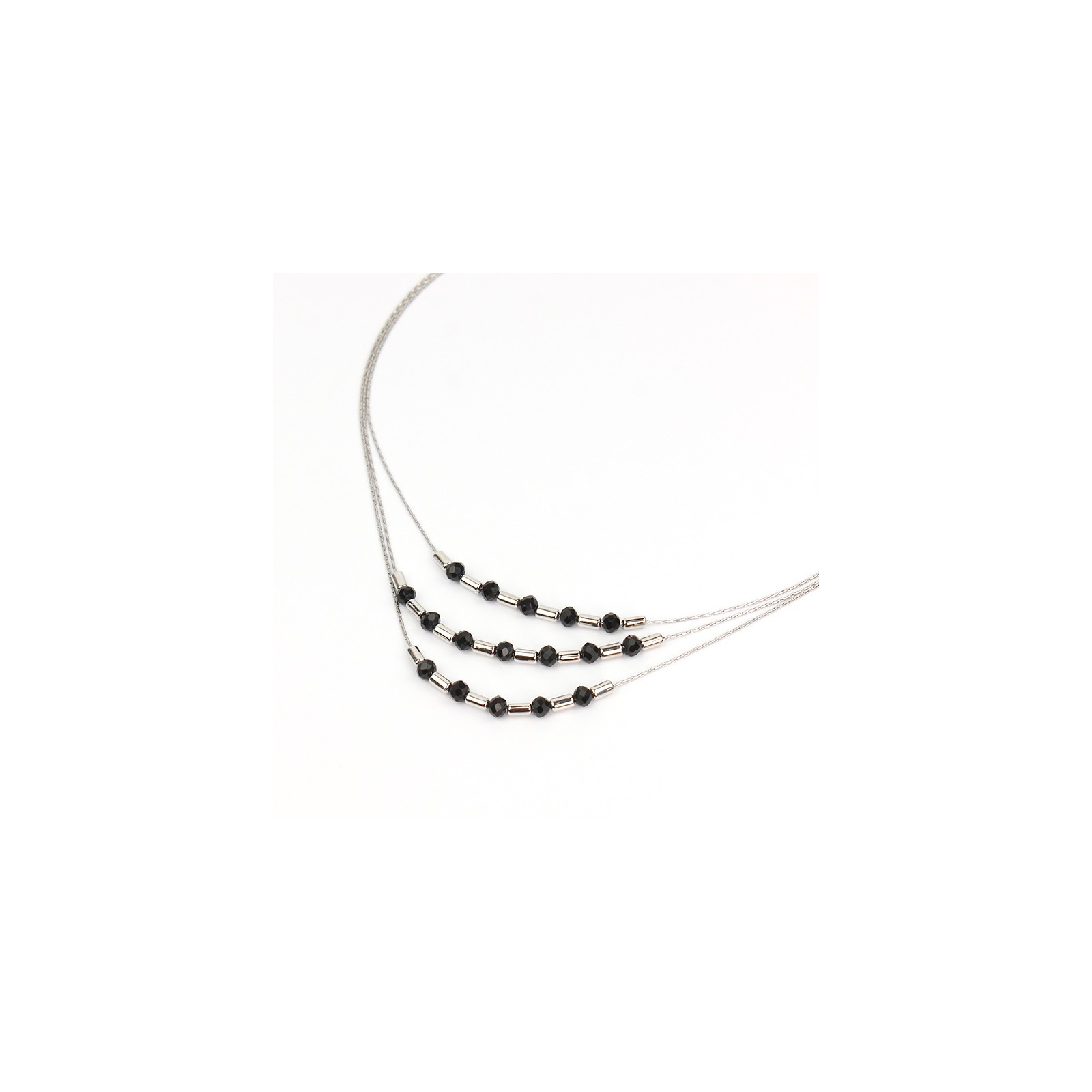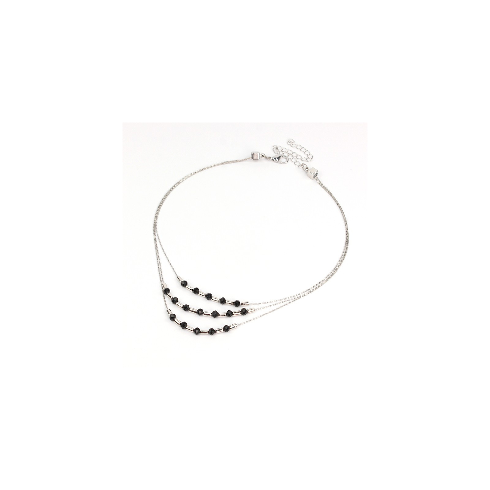 Collar de triple caída de cadenas diferenciadas intervenidas con rocas de cristal y piezas pasantes de CCB exclusivas.