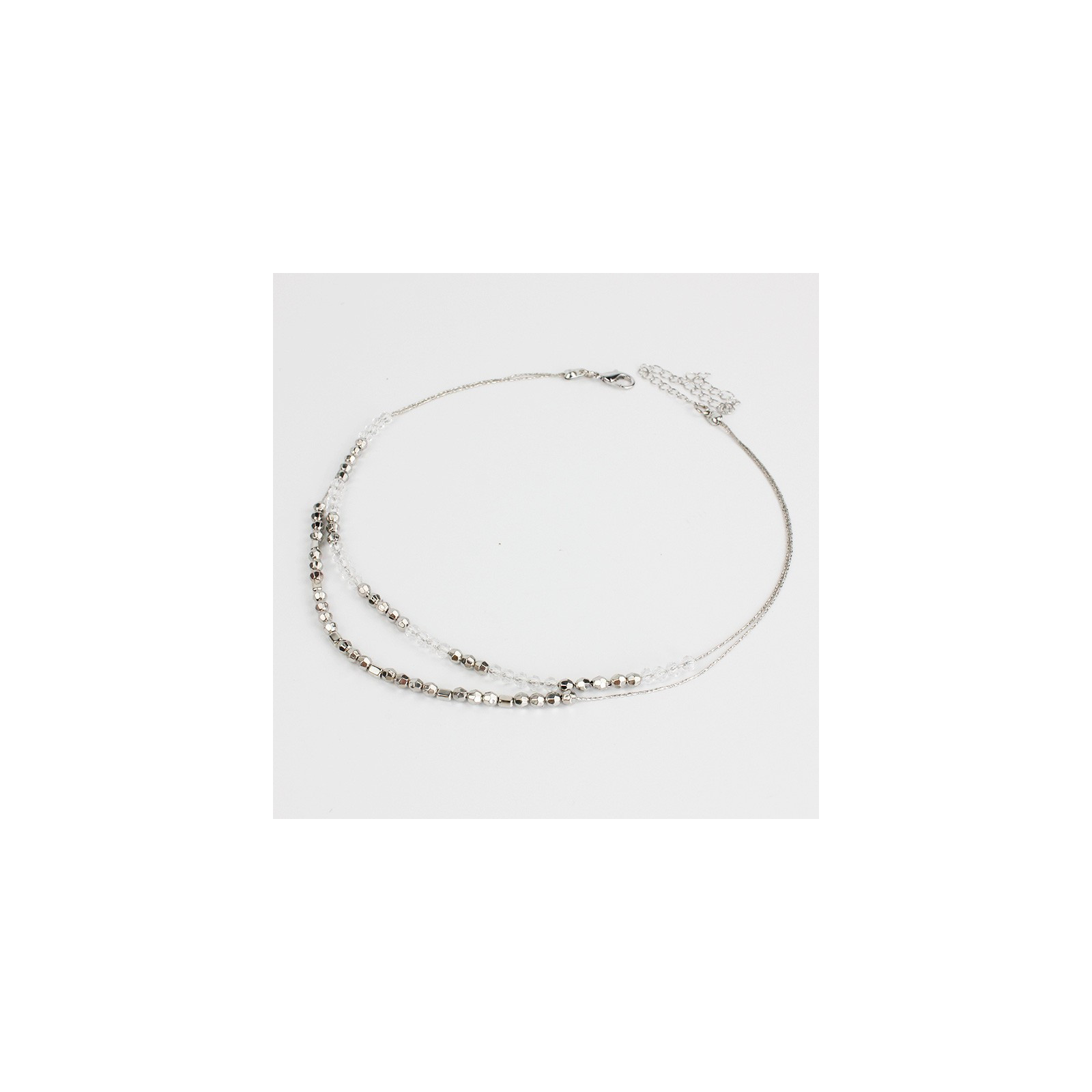 Collar de doble caída de cadena diferenciada, intervenidas con roca de cristal y piezas pasantes de CCB.