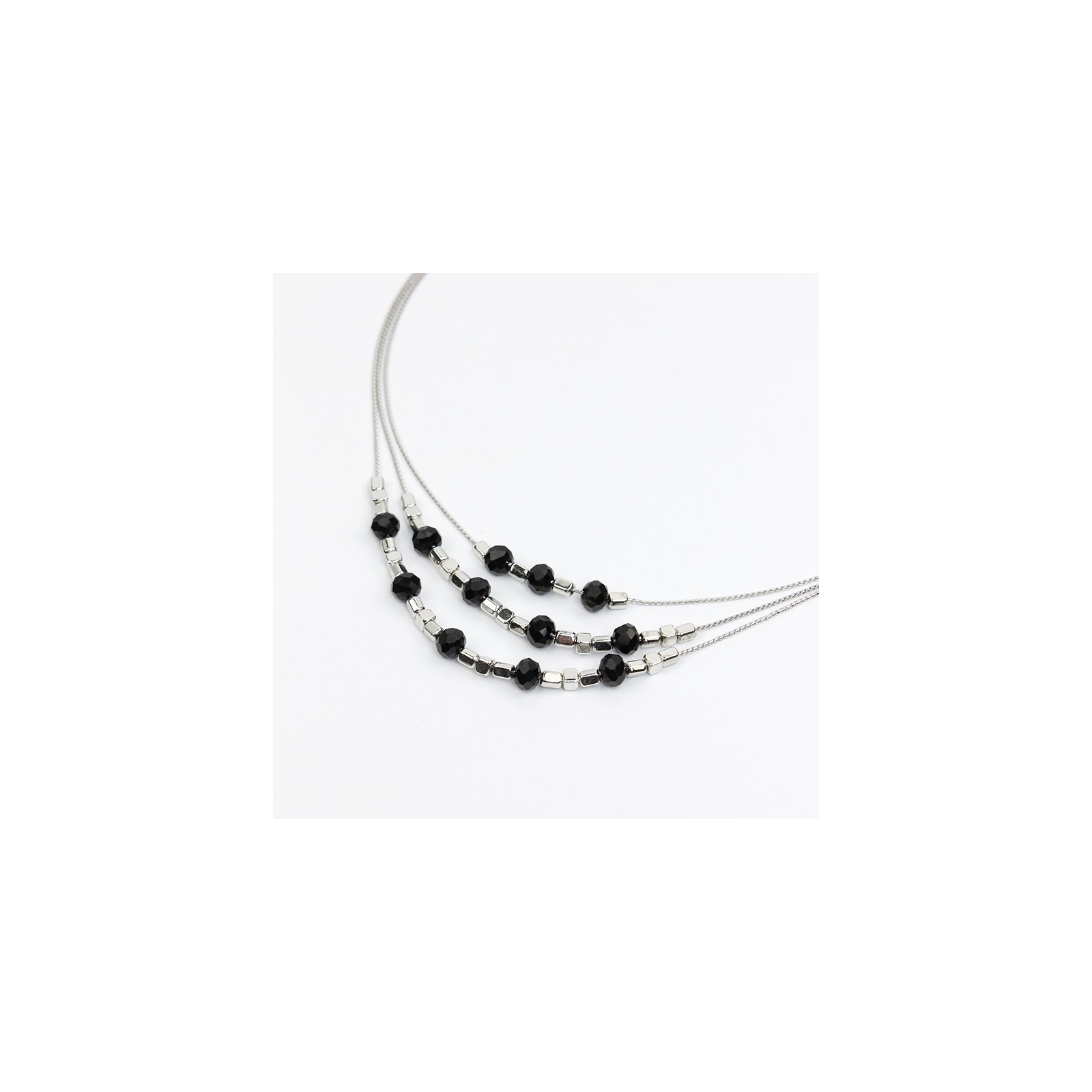 Collar de triple caída de cadenas diferenciadas intervenidas con rocas de cristal y piezas pasantes de CCB.