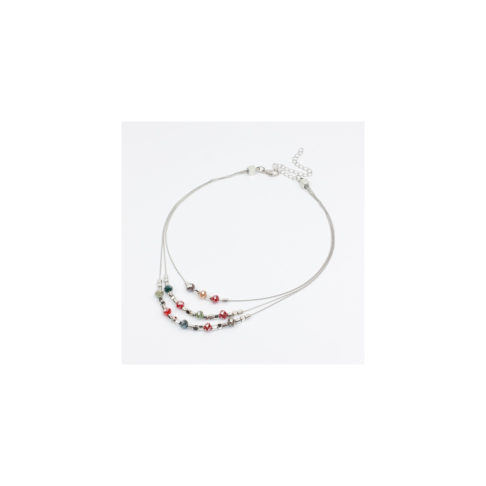 Collar de triple caída de cadenas diferenciadas intervenidas con rocas de cristal y piezas pasantes de CCB.