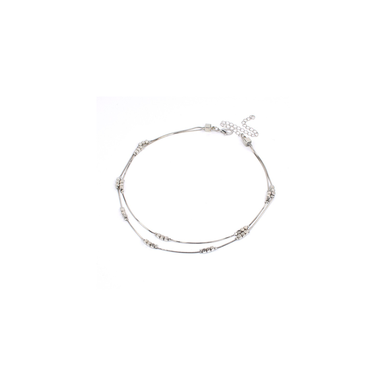 Collar de doble caída de cadenas diferenciadas exclusivas níquel.