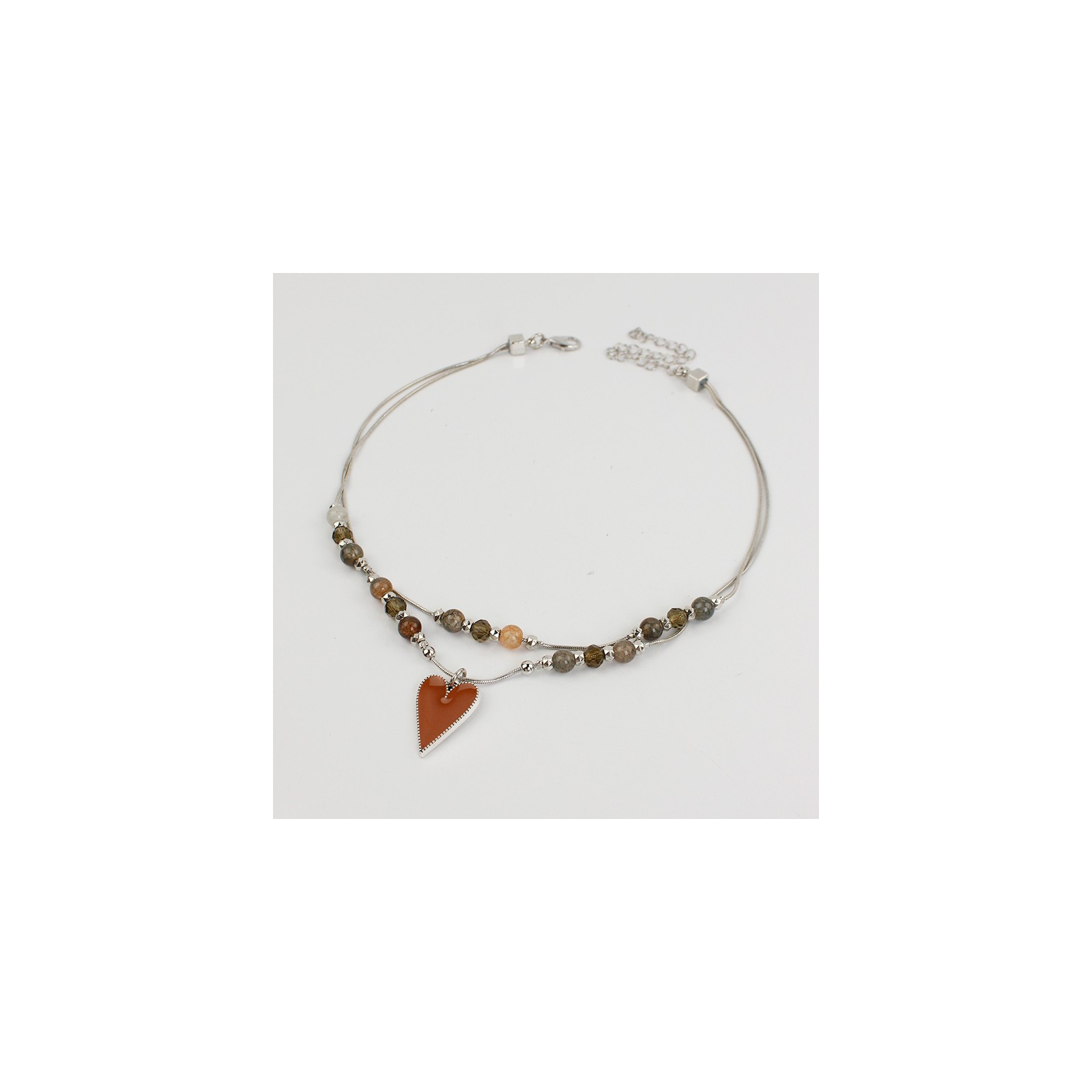 Collar de doble caída de cadena diferenciada con piezas de vidrio y dije exclusivo pintado a mano.