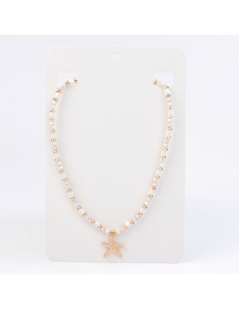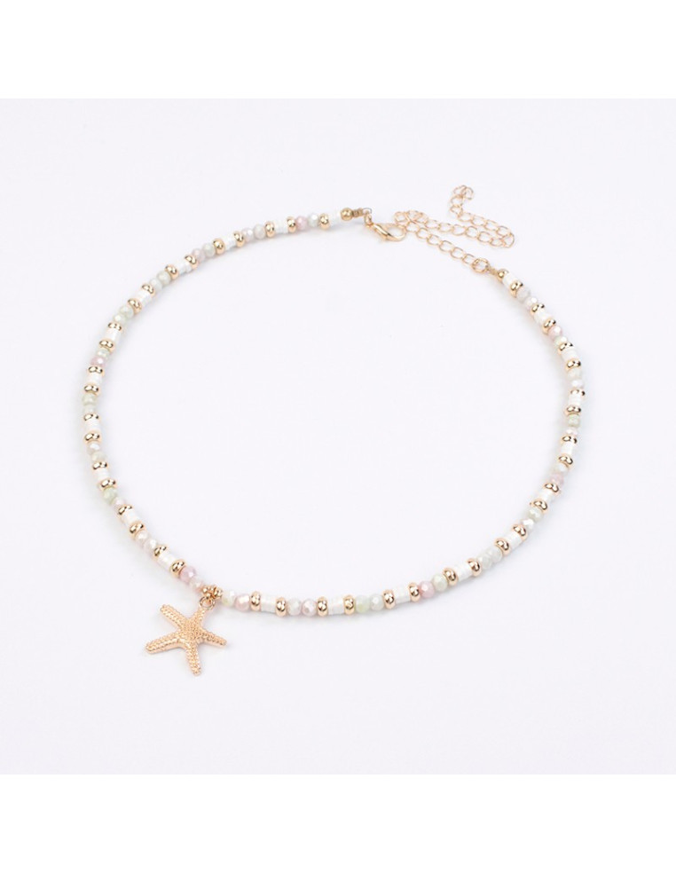 Collar flexible de rocas de cristal, combinado con fimo perdolado, piezas pasantes de CCB y dije exclusivo de fundición con forma de estrella de mar.