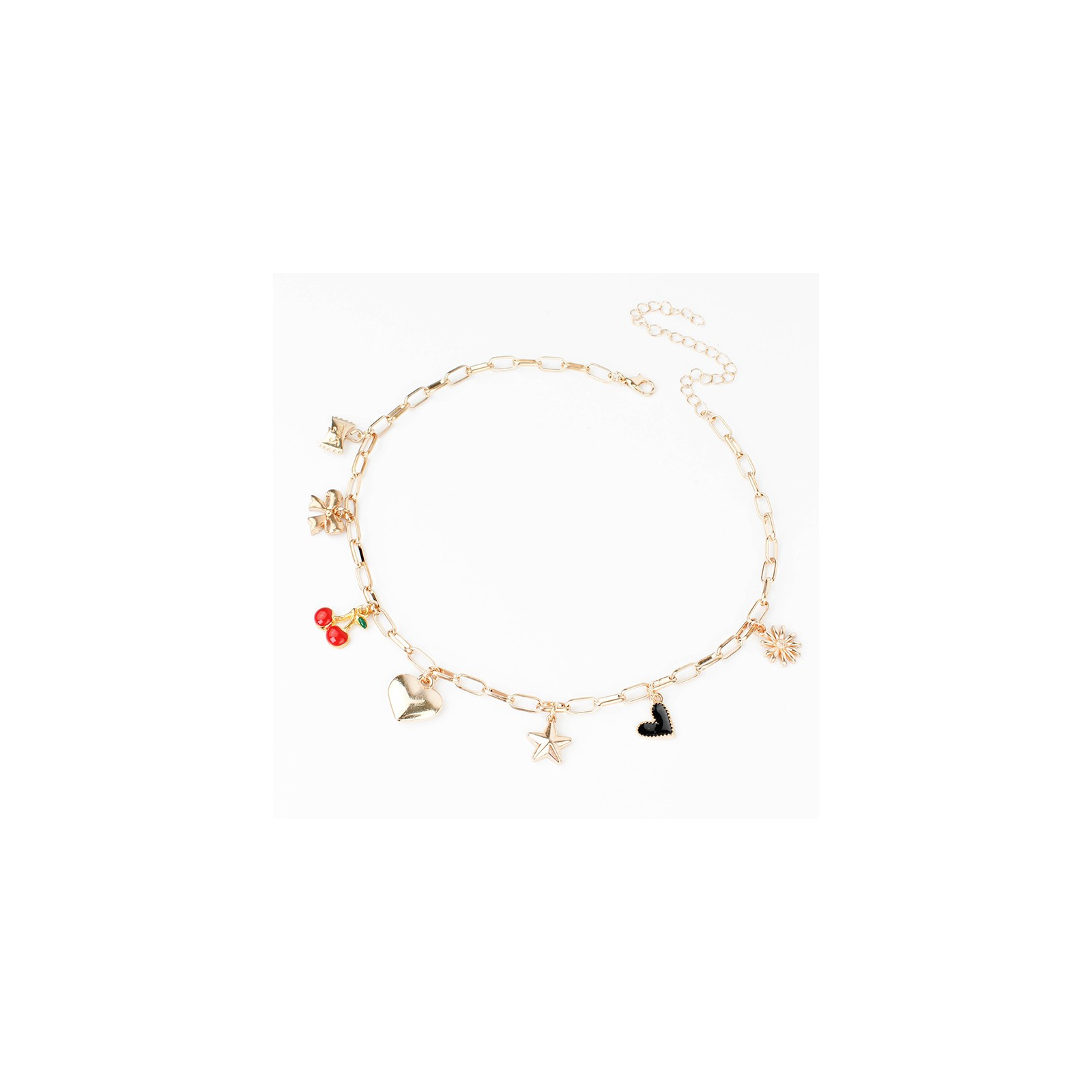 Collar de cadena diferenciada con múltiples dijes exclusivos dorados.