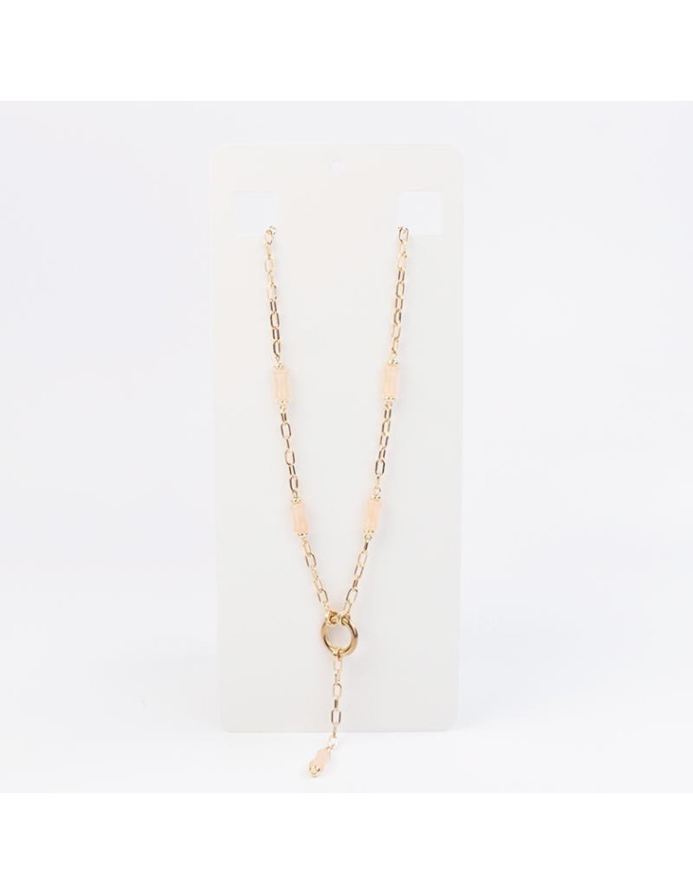 Collar corbatero de cadena diferenciada intervenida con piezas exclusivas de vidrio y pasantes de CCB.