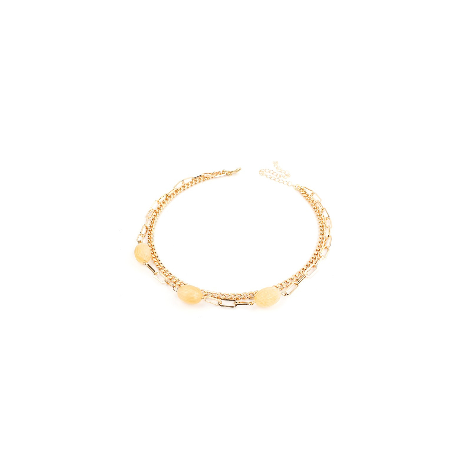 Collar de doble caída de cadenas diferenciadas una de ellas intervenida con piezas de acrílico.